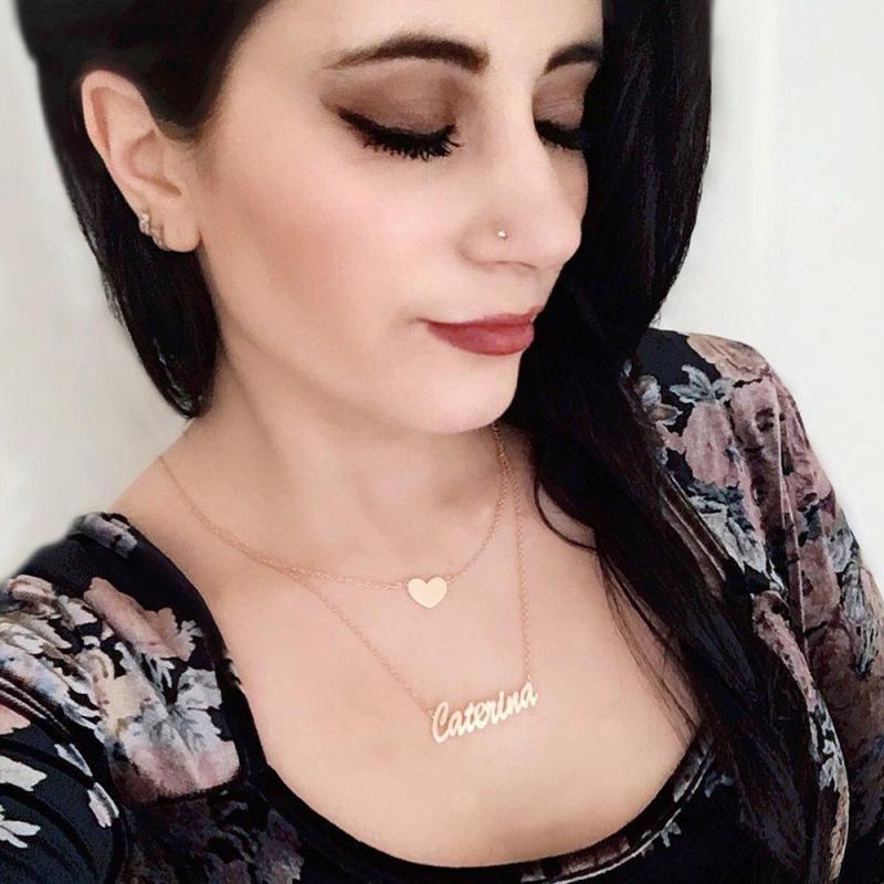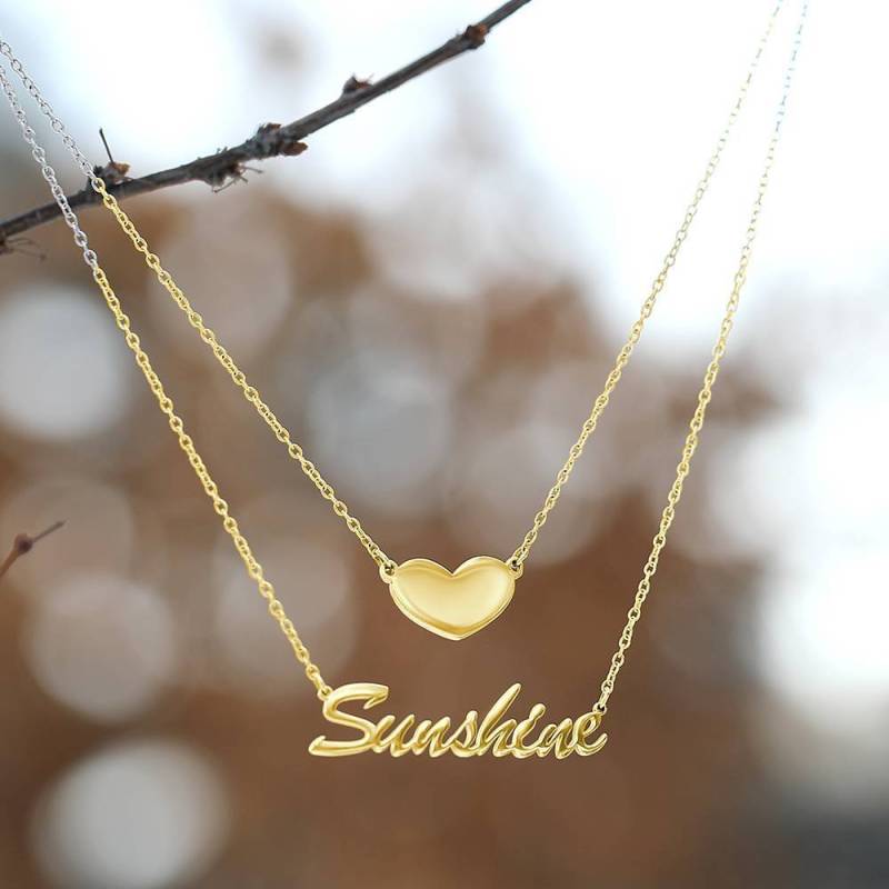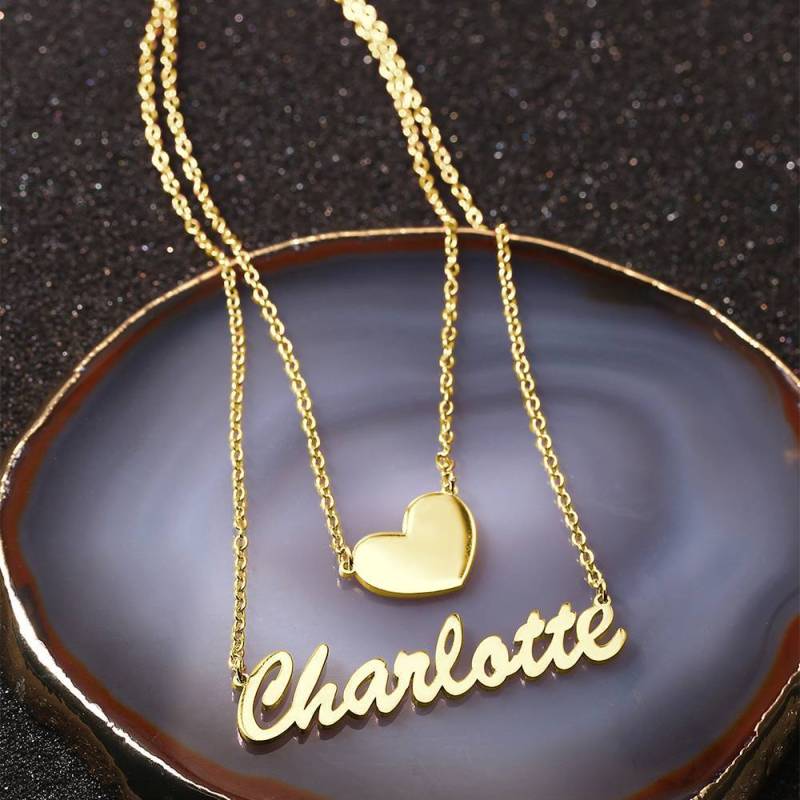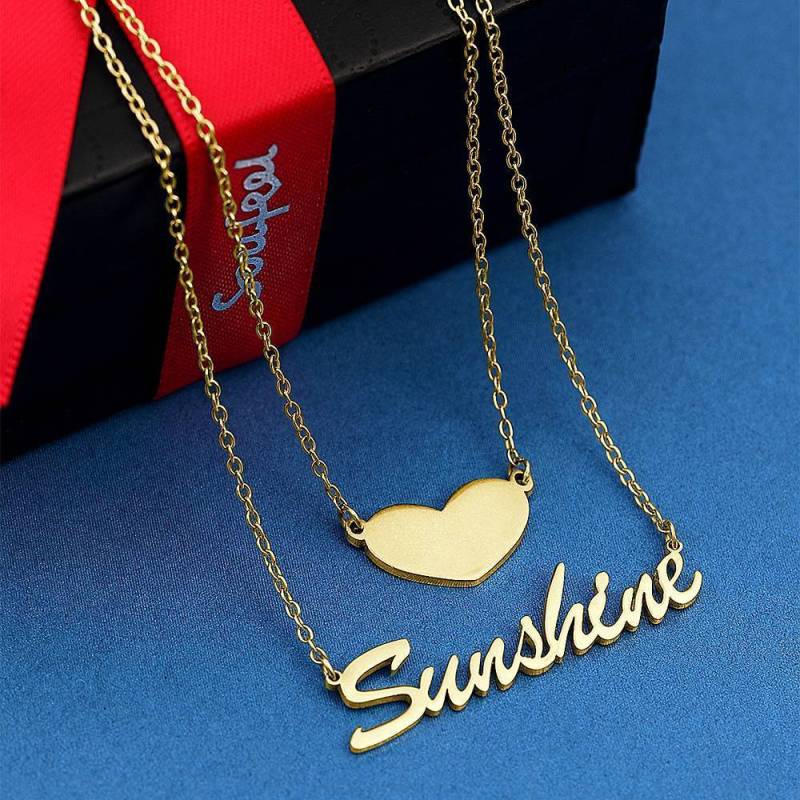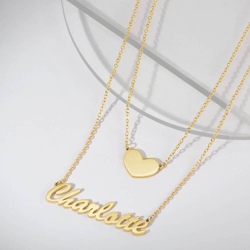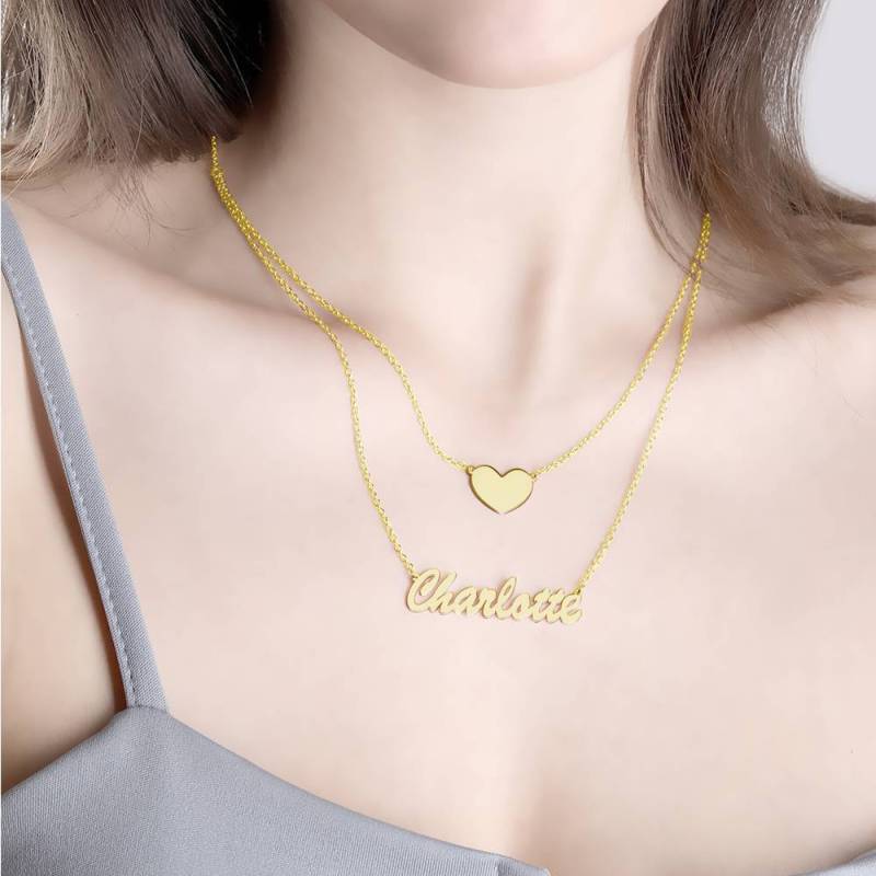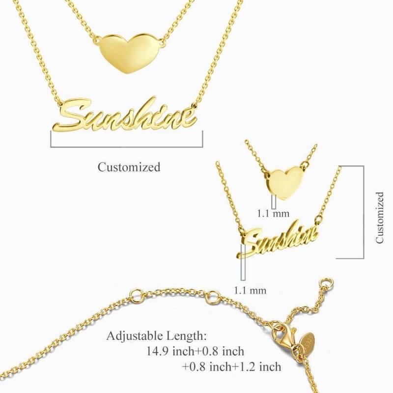 Zwei Schichten Personalisierte Herz Name Halskette 14K Gold Plattiert Silber