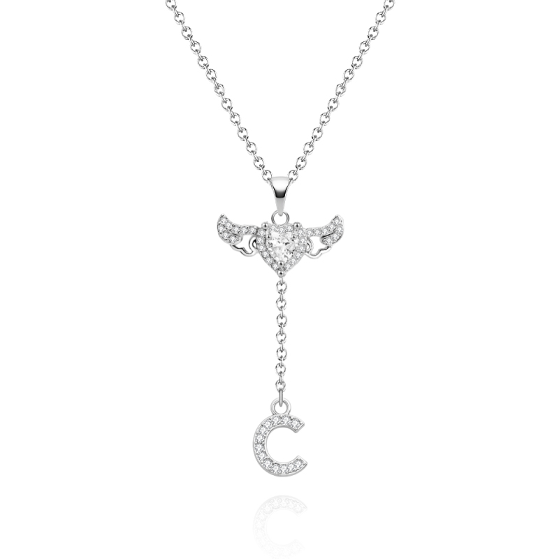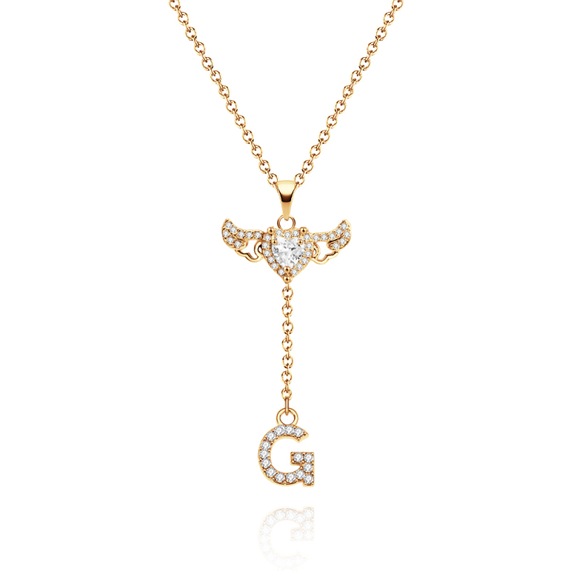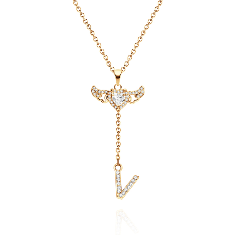 Animierte Initialen-halskette Mit Amor-engelsflügeln. Individuelle Initialen-tropfen-halskette Mit Beweglichen Flügeln. Lustiger Kinetischer Initialen-tropfen-anhänger. Weihnachtsgeschenke Für Sie