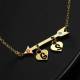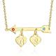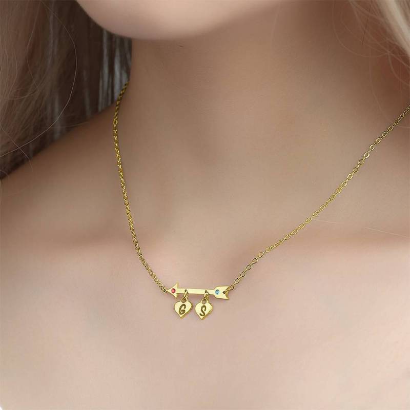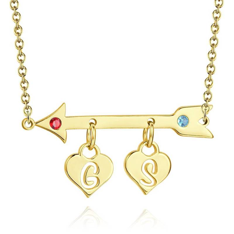Anfängliche Geburtsstein Halskette, Kundenspezifische Halskette Pfeil mit Zwei Herzen 14k Vergoldet - Golden