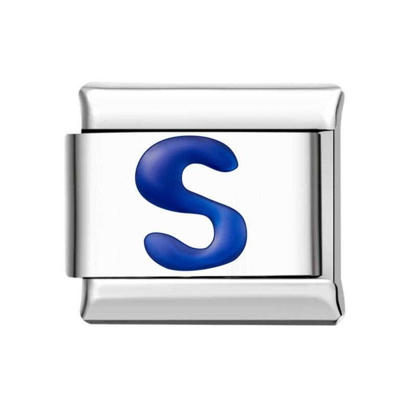 Blauer S-charm Für Italienische Charm-armbänder Composable Link