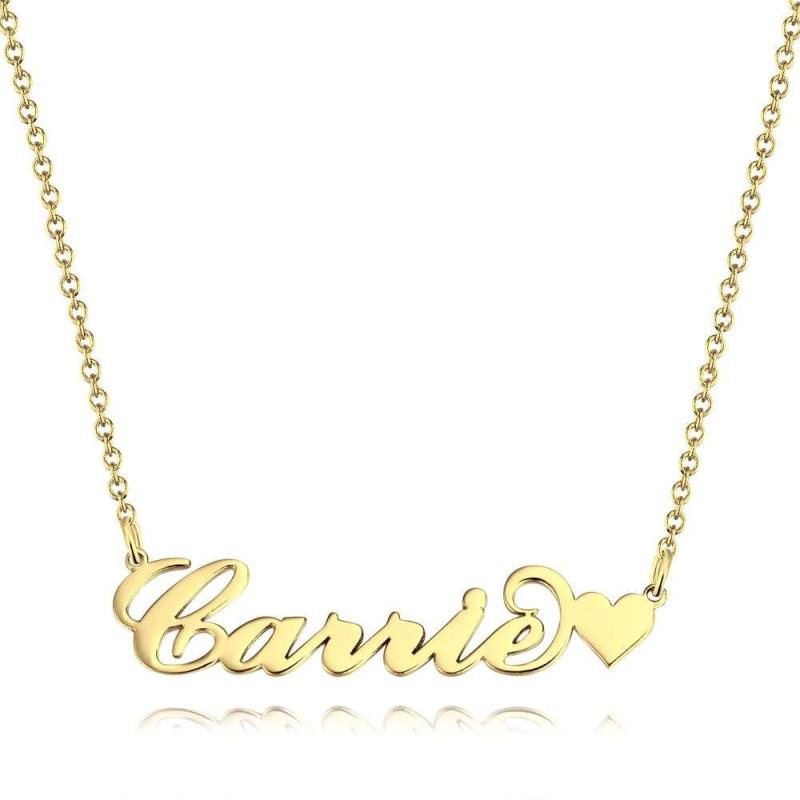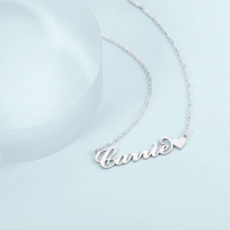 Carrie Stil Name Halskette Mit Herzchen Silber