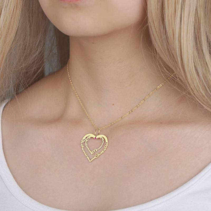 Custom Birthstone Name Halskette, Einzigartiges Geschenk 14K Gold Plattiert - Golden