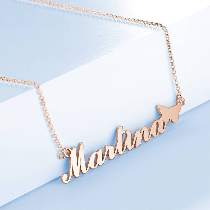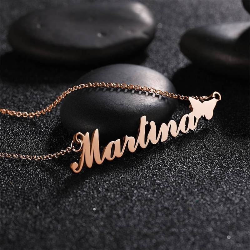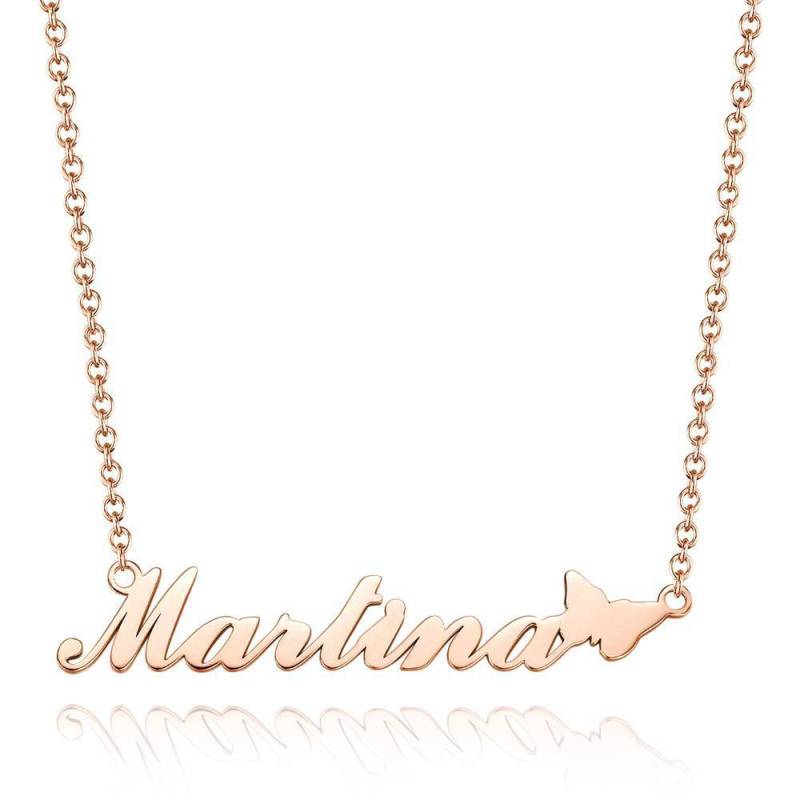 Namenskette mit Niedlichem Schmetterling, Perfektes Geschenk für Freundin Rose Vergoldet