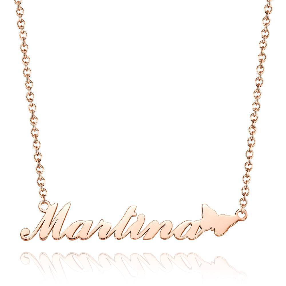 Namenskette mit Niedlichem Schmetterling, Perfektes Geschenk für Freundin Silber Vergoldet