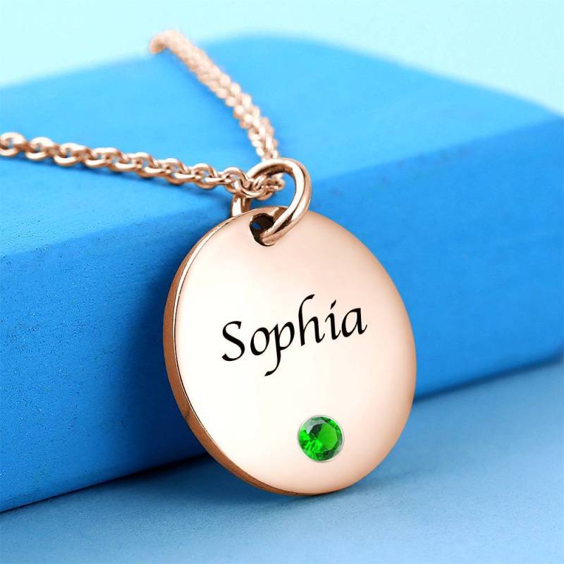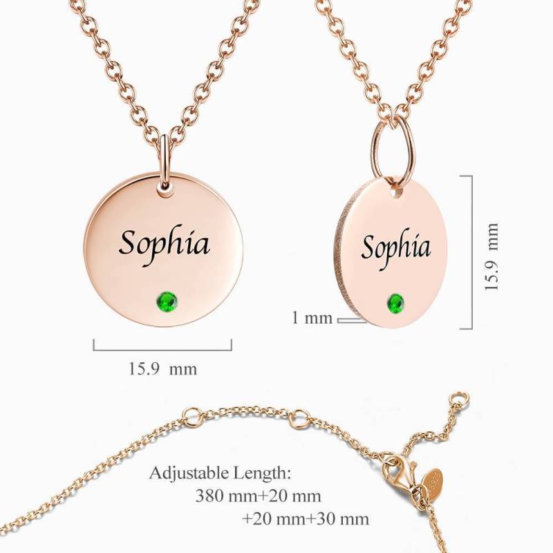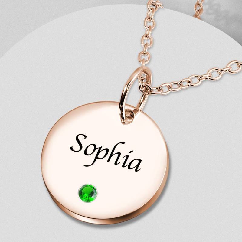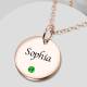 Münzanhänger personalisierte Geburtsstein-Halskette mit graviertem roségoldbeschichtetem Silber