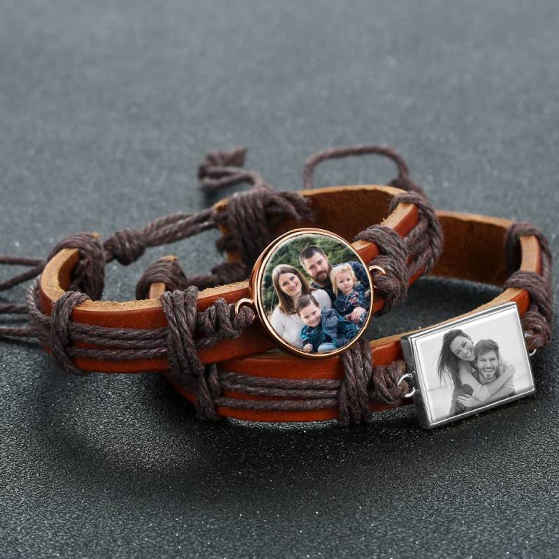 Foto Armband, Andenken Geschenk Braunes Leder Quadratisch Rose Vergoldet - Bunt