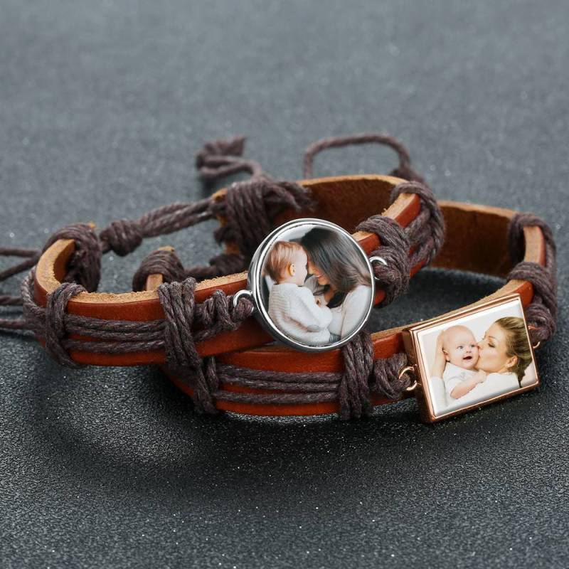 Foto Armband, Andenken Geschenk Braunes Leder Quadratisch Rose Vergoldet - Bunt