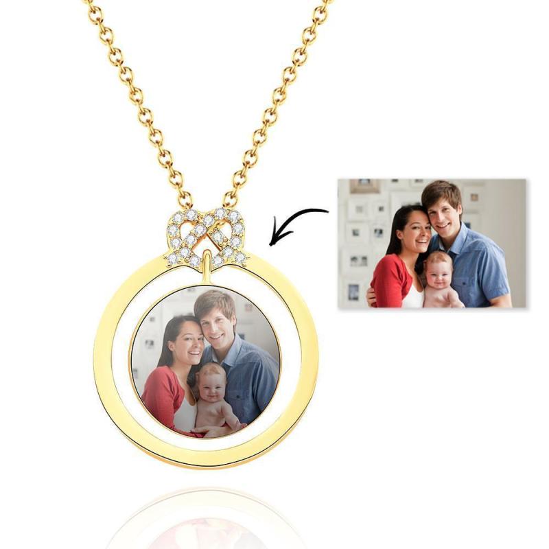 Benutzerdefinierte Foto-Halskette Diamond Round Frame For Family Mom Dad