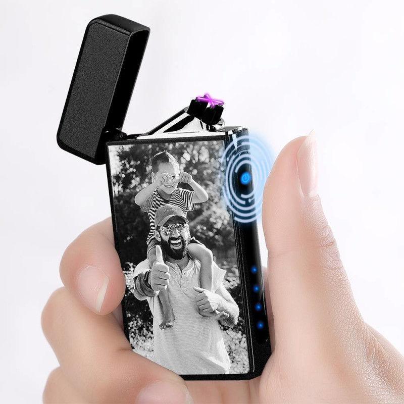Vatertags Geschenke Foto Feuerzeug mit Gravur Elektrischer Feuerzeug Schwarz Matt Perfekte Familie