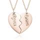 Paar-Halskette, Namenshalskette Gebrochenes Herz Rose Vergoldet - Silber