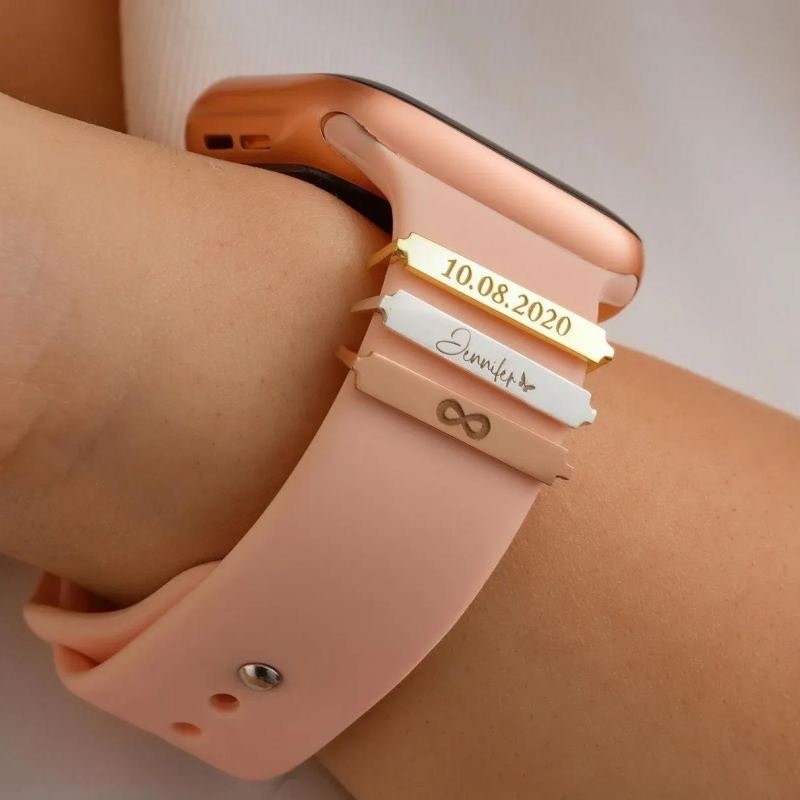 Personalisierter Apple Watch Band Namensanhänger, Personalisierter Sterling Silber Uhrenanhänger, Valentinstag Geschenk Für Sie, Uhrenarmband Charm