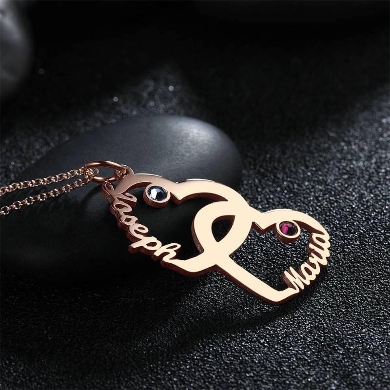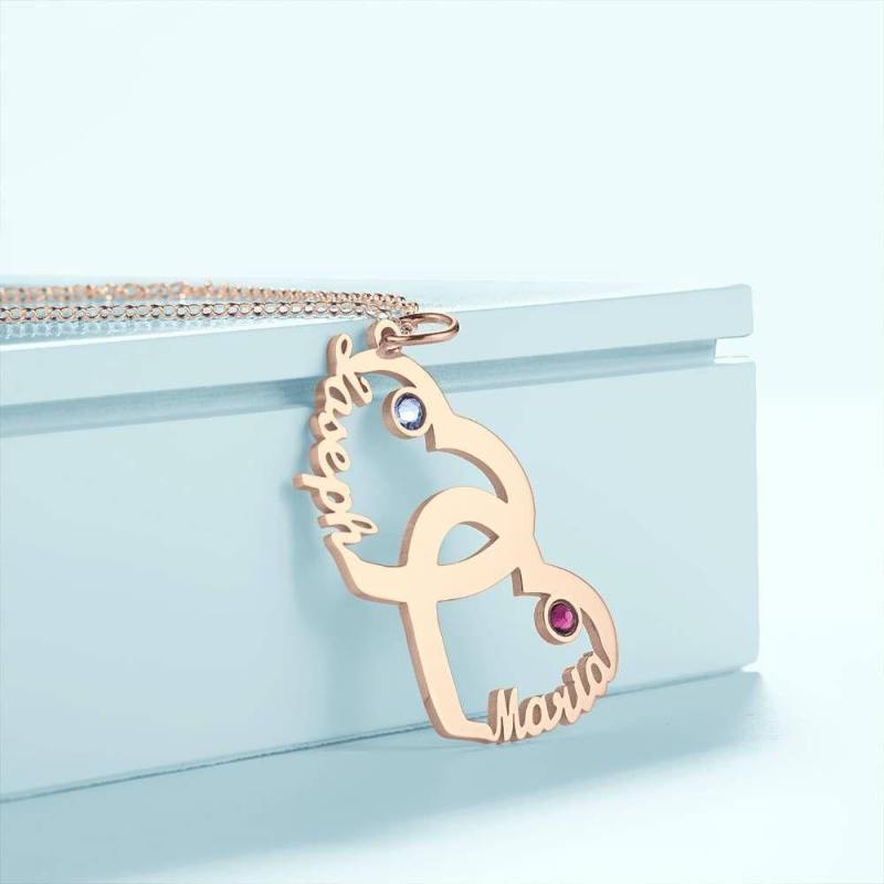 Individuelle Geburtsstein-Halskette, Namenshalskette In Herzform Rose Vergoldet - Silber