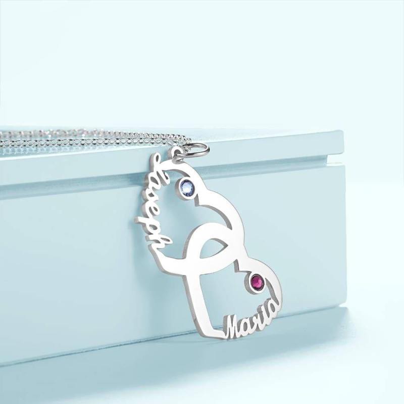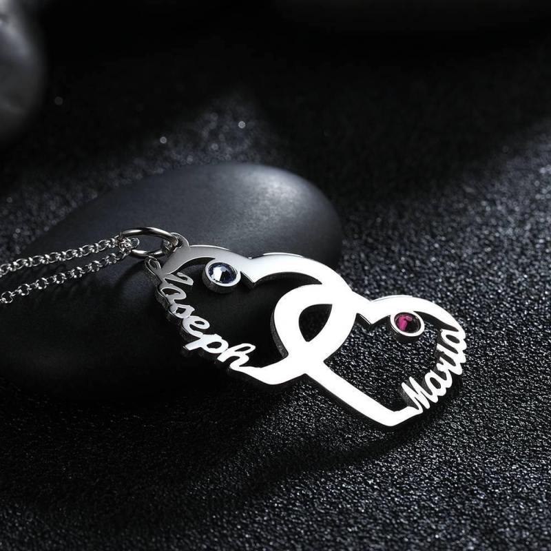 Individuelle Geburtsstein-Halskette, Namenskette In Herzform Silber