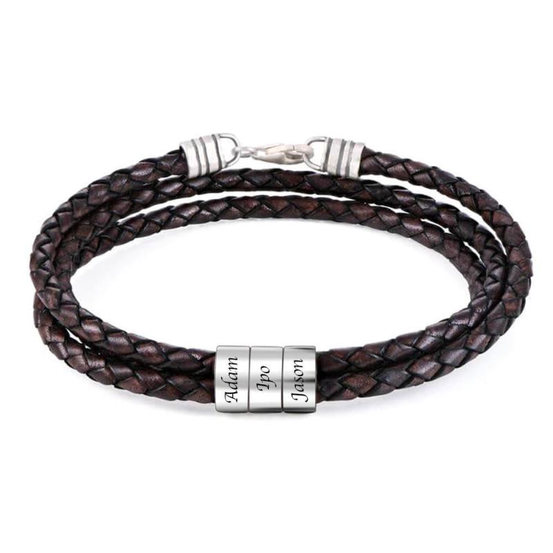 Personalisierte Namen Herren Armband mit Benutzerdefinierten Gravur Perlen Armreif Flechtseil Leder Schwarz Armbände
