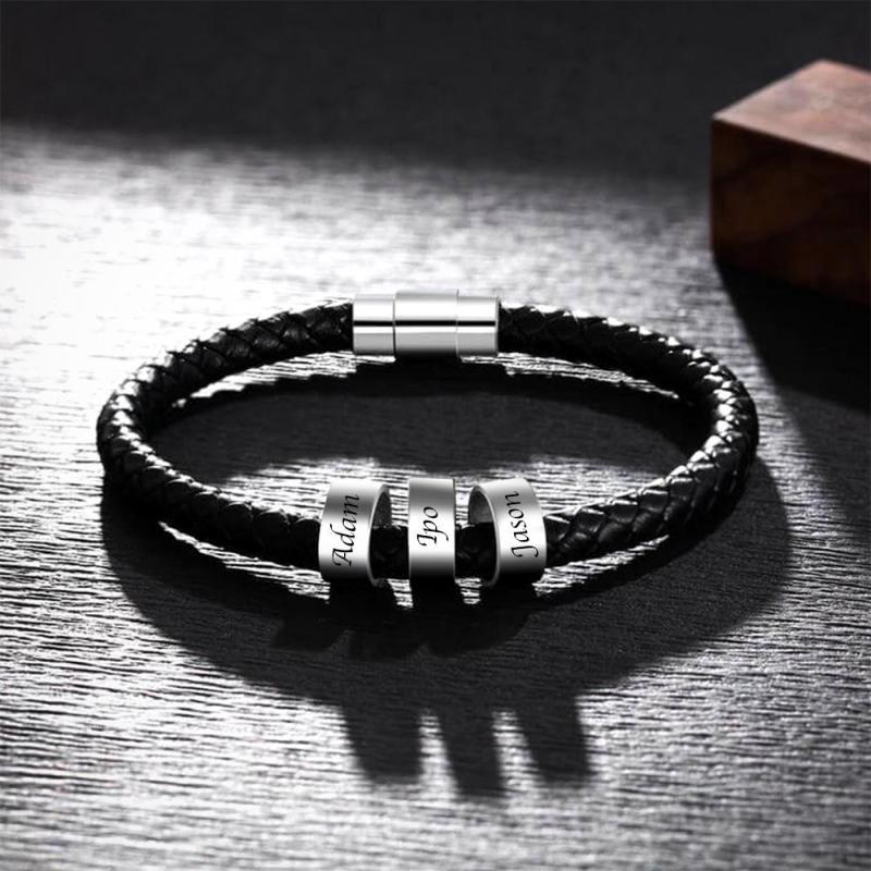 Personalisierte Gravierte Armband Schwarzes Leder Perlen Armband Klein Benutzerdefinierte Perle Für Ihn