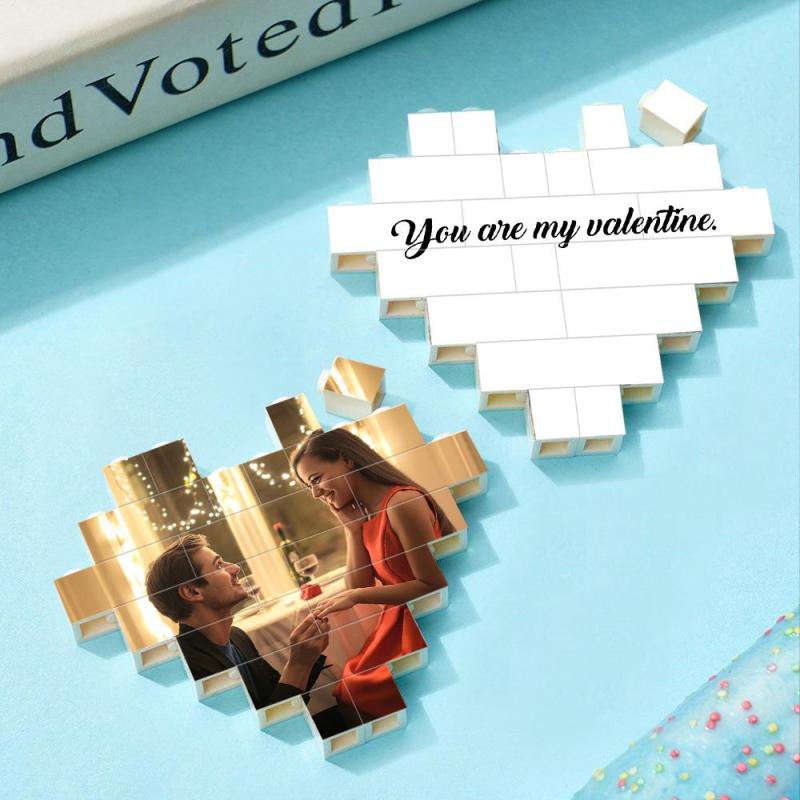 Individuelles Baustein-Puzzle Personalisiertes herzförmiges Foto- und Textblock-Geschenk für Paare
