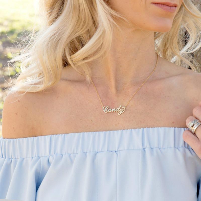 Custom Carrie Style Name Necklace In 14k Gold Plated