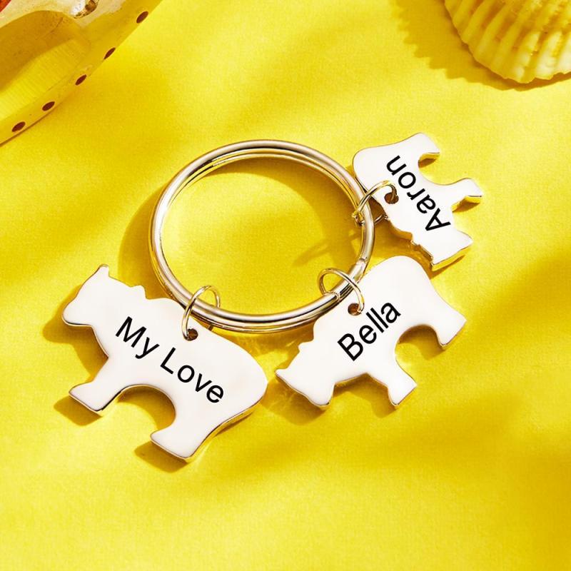 Individuell Gravierter Bärenfamilie Schlüsselanhänger Baby Bär Set Schlüsselanhänger
