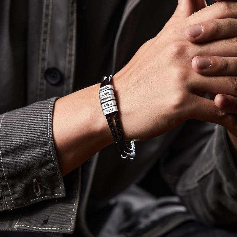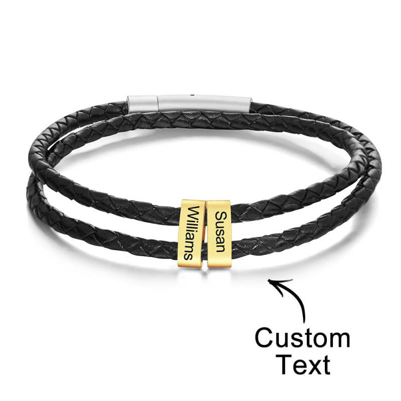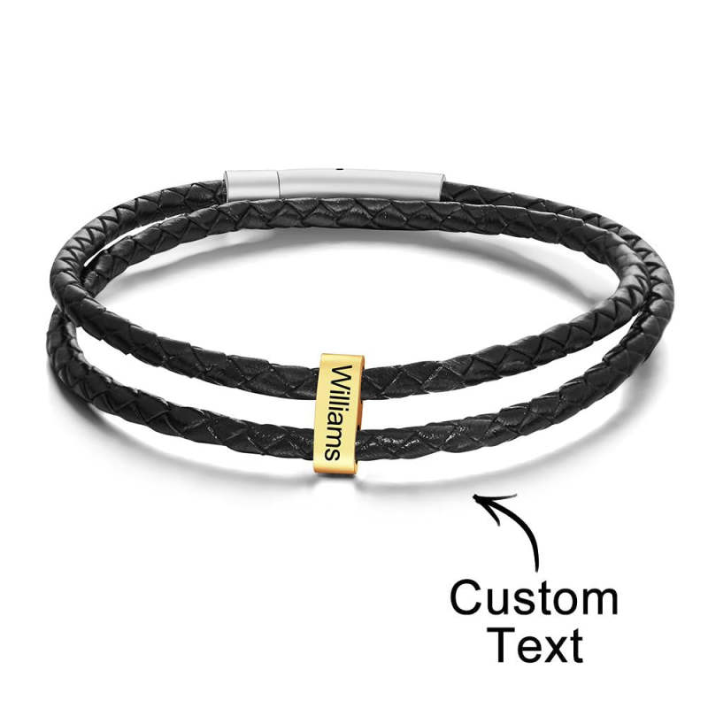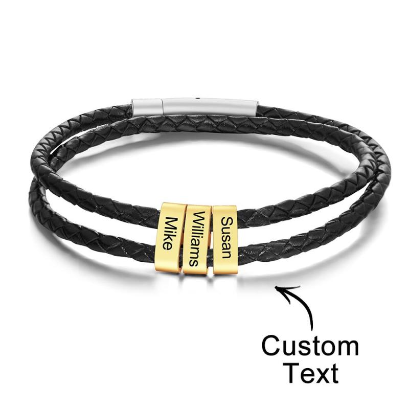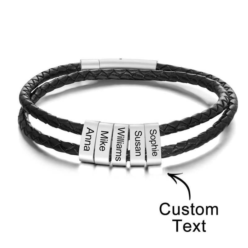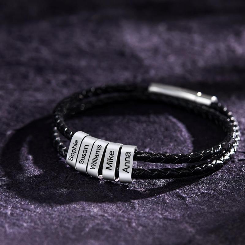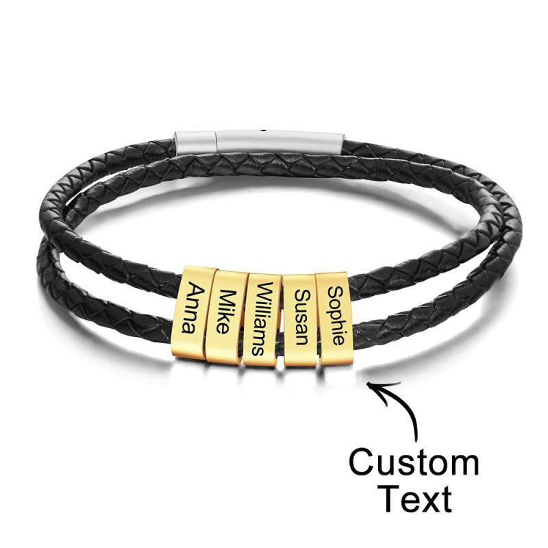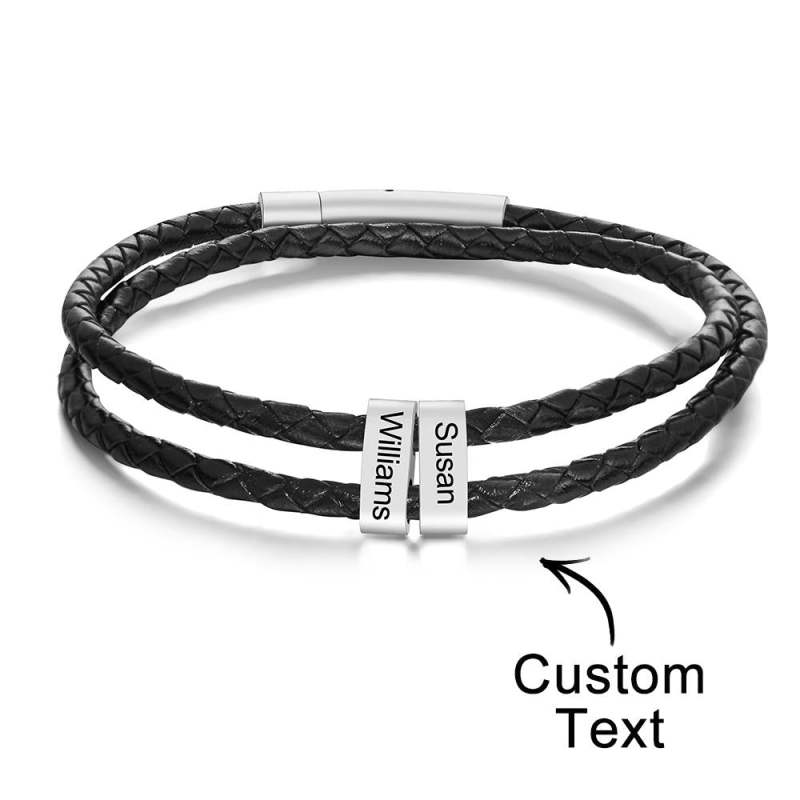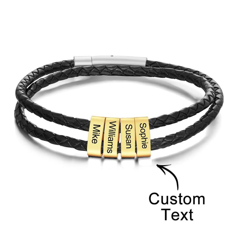 Benutzerdefinierte Gravierte Armband Perlen Geflochtene Leder Herrengeschenke