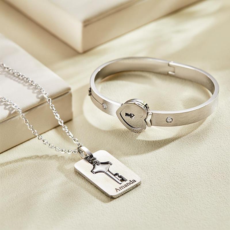 Benutzerdefinierte Gravierte Concentric Lock Armband Schlüssel Halskette Paar Geschenke