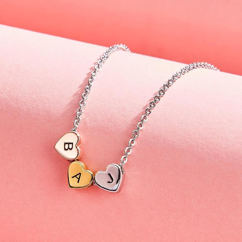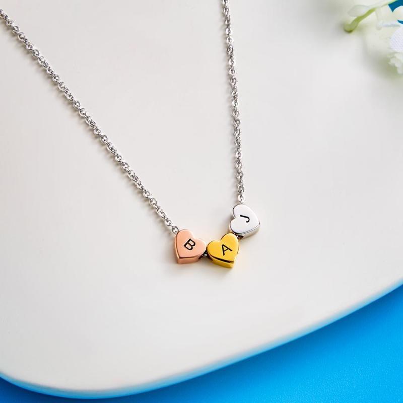 Individuell Gravierte Halskette Dreifach-Herz-Halskette Aus Gebürstetem Metallgemisch