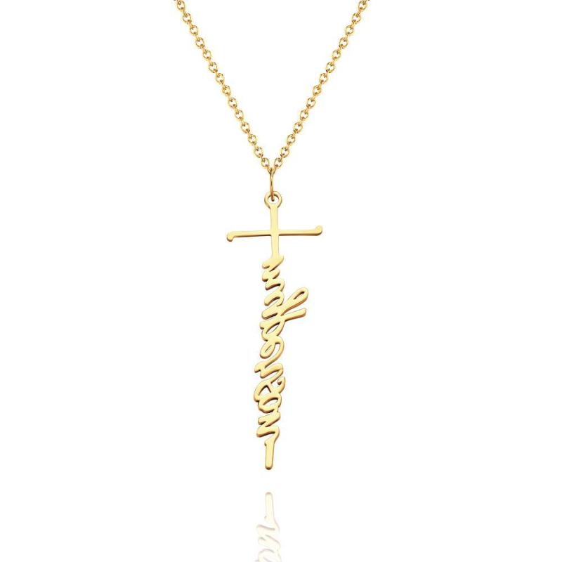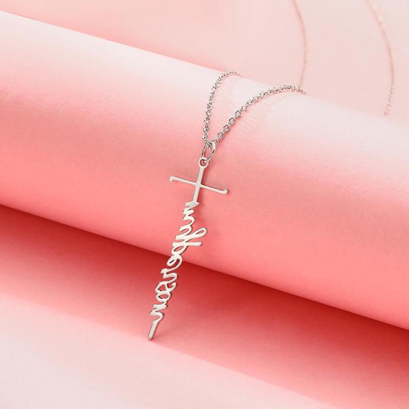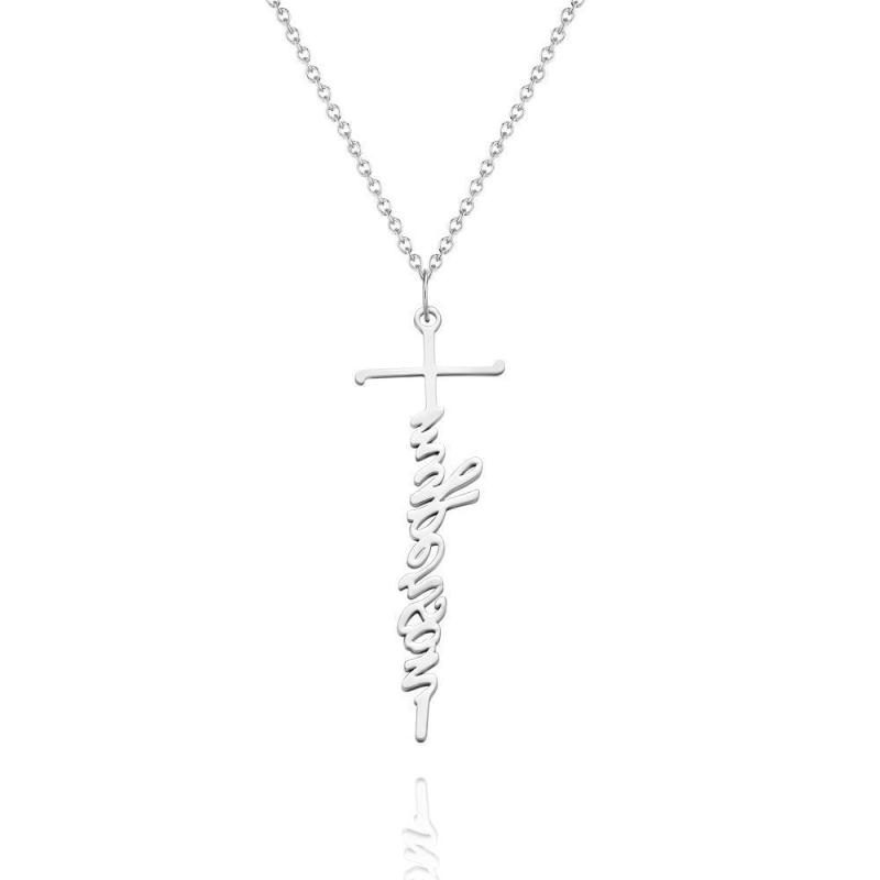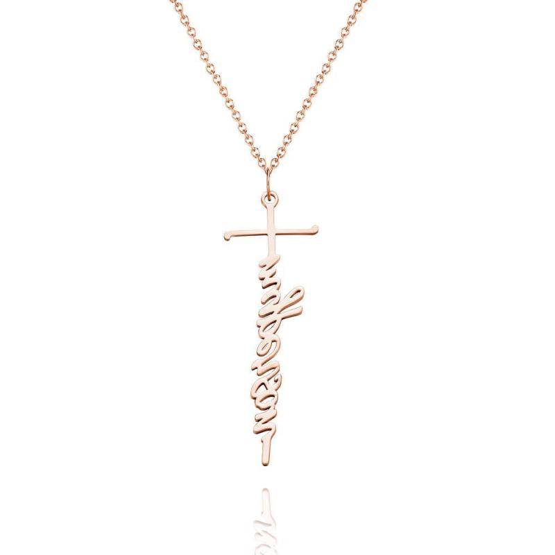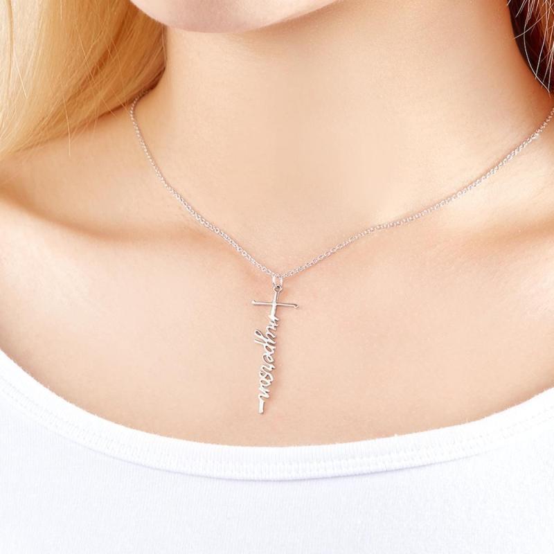 Benutzerdefinierte Gravierte Halskette Kreuz Squiggly Schriftzug Geburtstagsgeschenk Für Sie