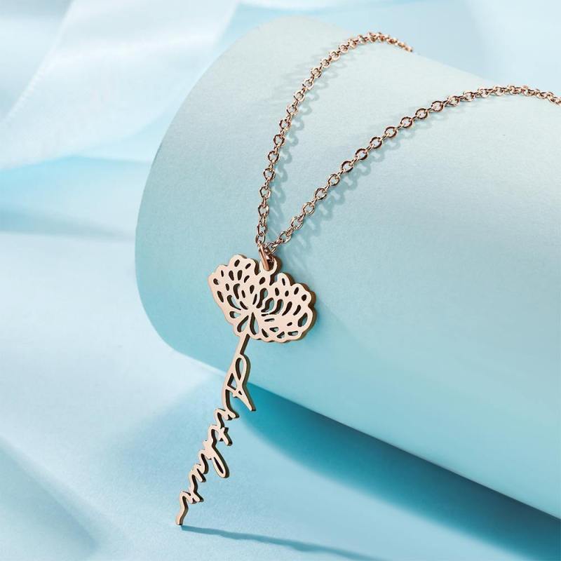 Individuell Gravierte Halskette In Rosenform Als Erinnerungsgeschenk - Roségold