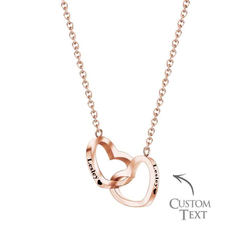 Individuell Gravierte Halskette Mit Zwei Herzen, Personalisiertes Namensgeschenk Für Paare