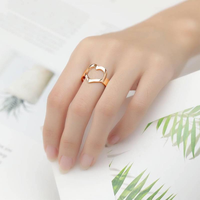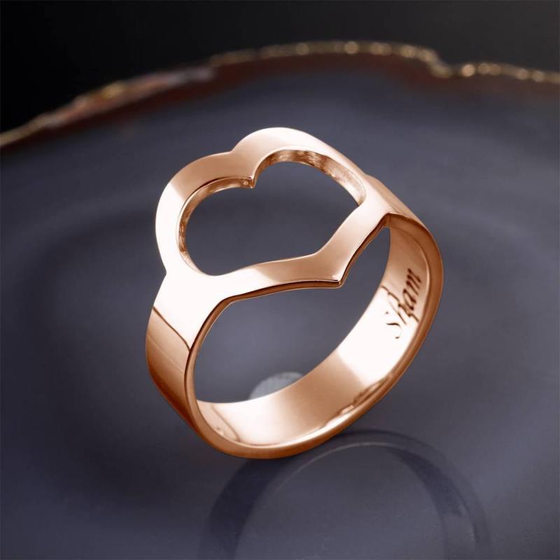 Ring Mit Gravur Und Süßem Herz Rose Vergoldet