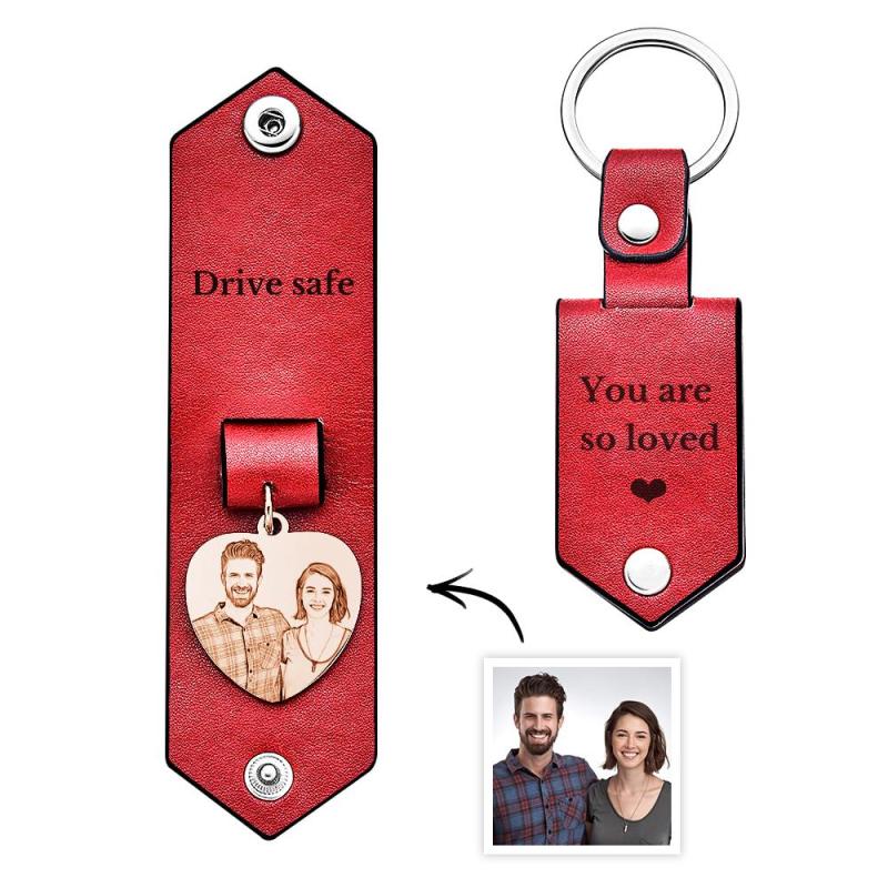 Personalisierter Herzförmiger Foto-schlüsselanhänger Aus Leder Mit Text, Jubiläumsgeschenke Für Männer