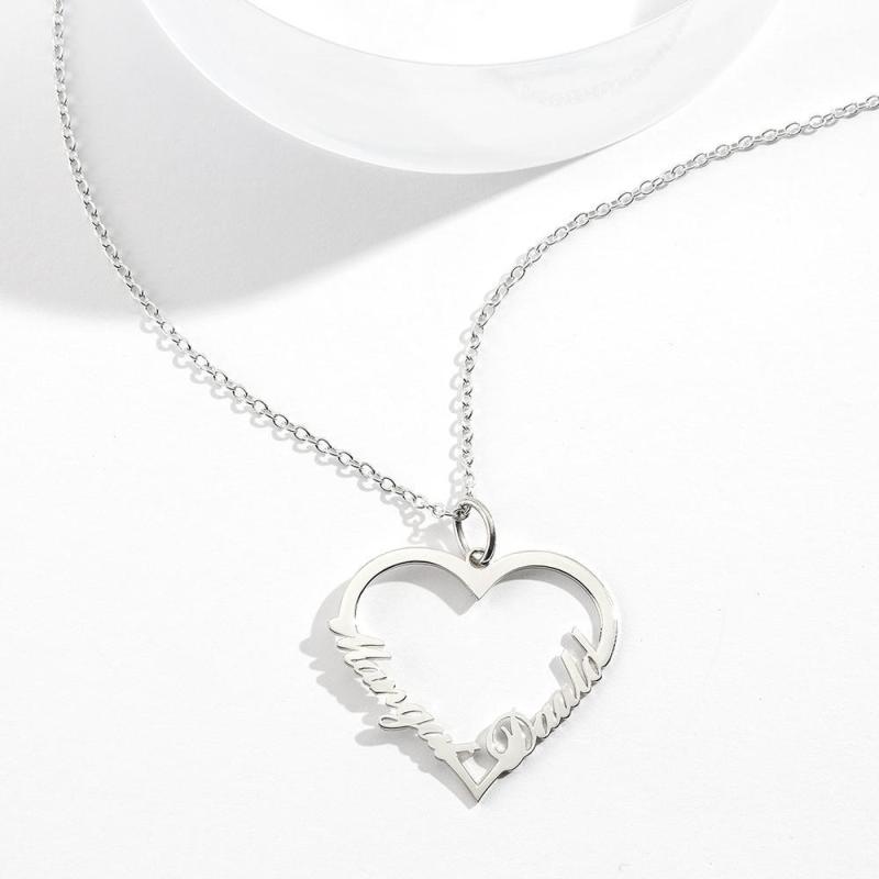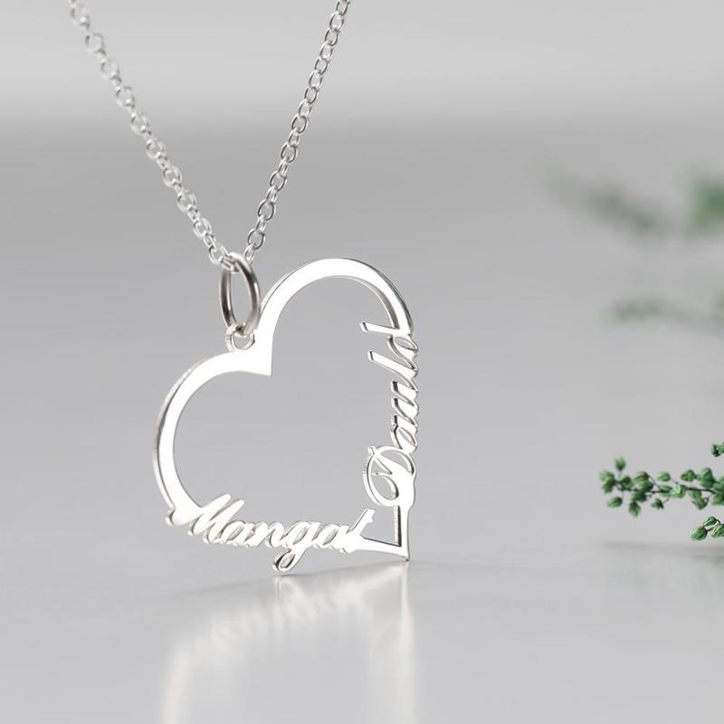 Namenskette, Personalisierte Herz Zwei Namen Halskette Silber