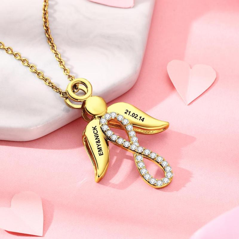 Benutzerdefinierte Infinity Halskette Flügel Anhänger Name Halskette 14K Gold