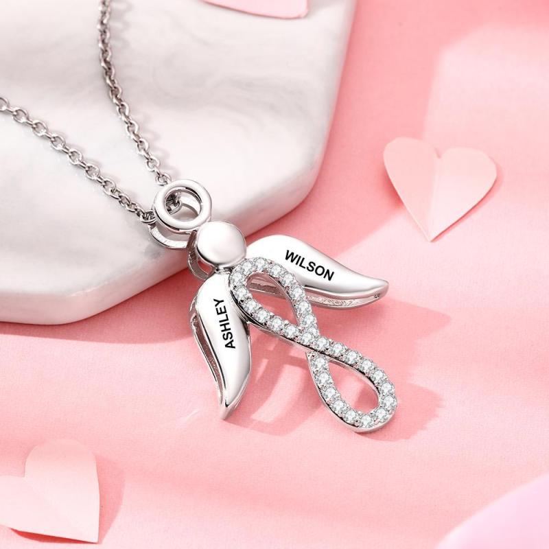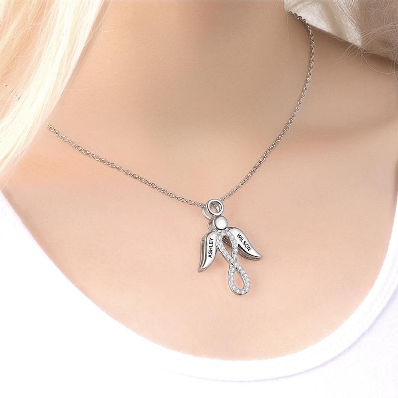 Benutzerdefinierte Unendlichkeit Halskette Flügel Anhänger Name Halskette