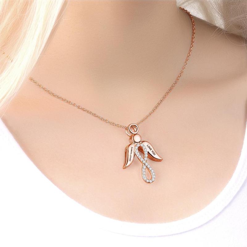 Benutzerdefinierte Unendlichkeit Halskette Flügel Anhänger Name Halskette Roségold