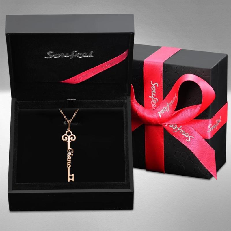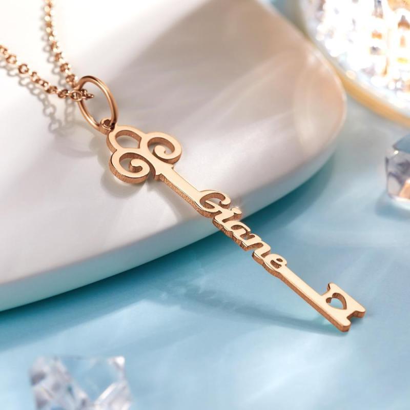Personalisierte Schlüssel Namenshalskette Personalisiertes Geschenk Hochzeitsgeschenk Rose Gold Vergoldet Silber