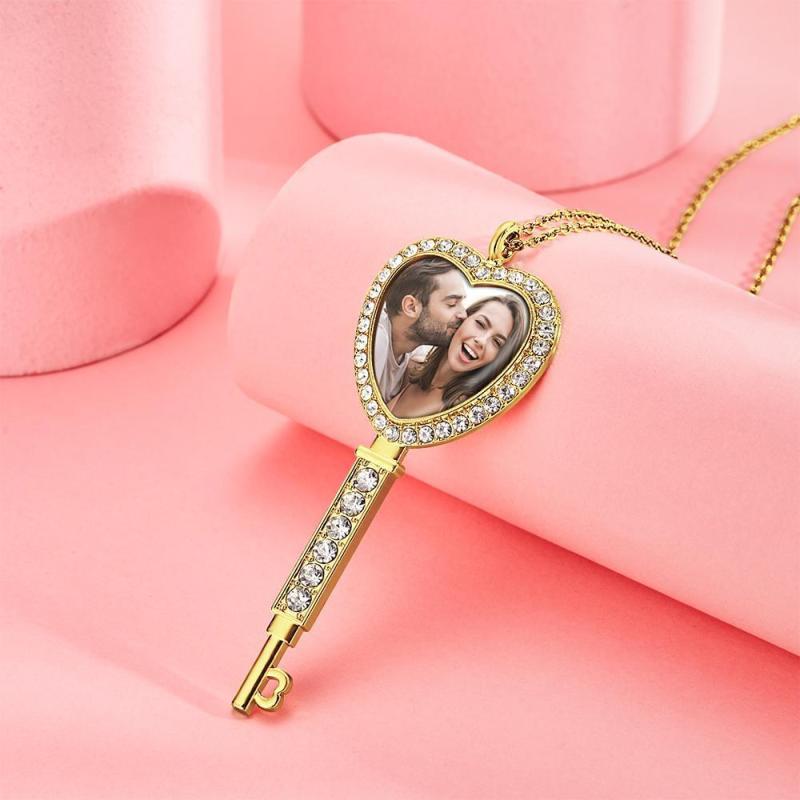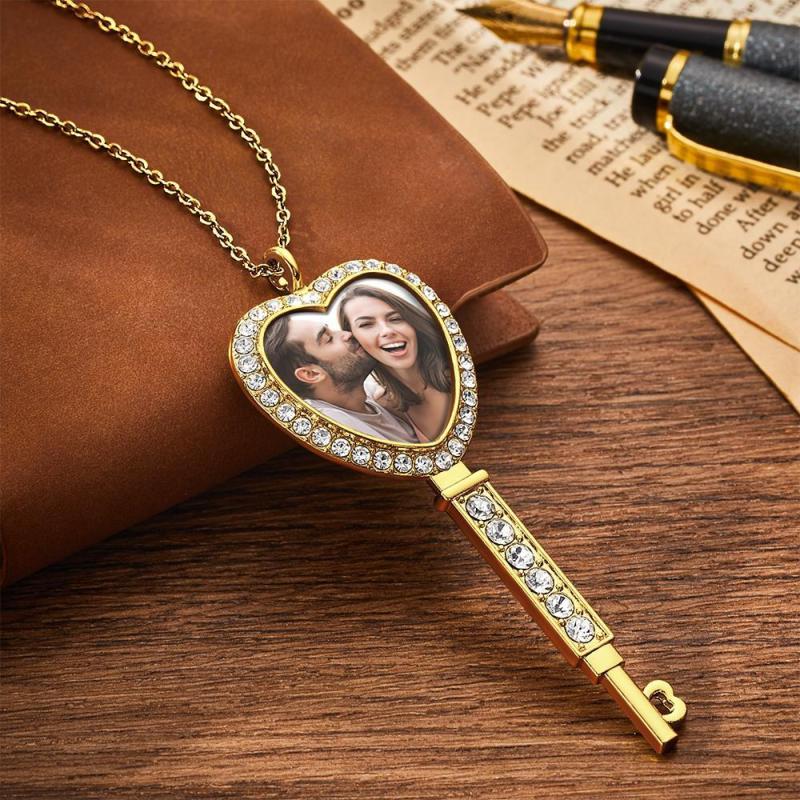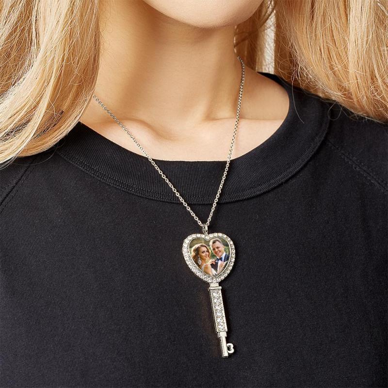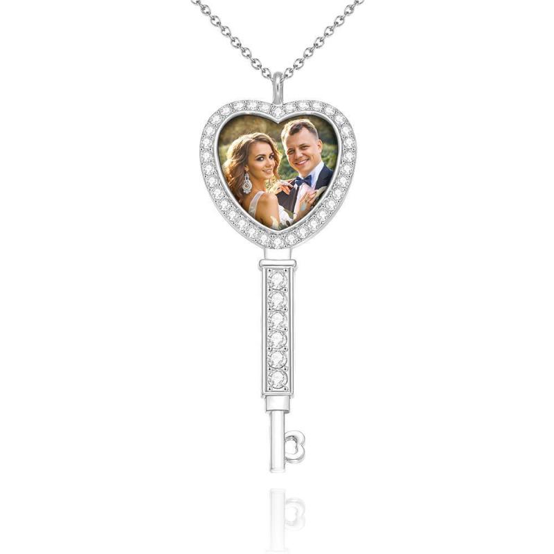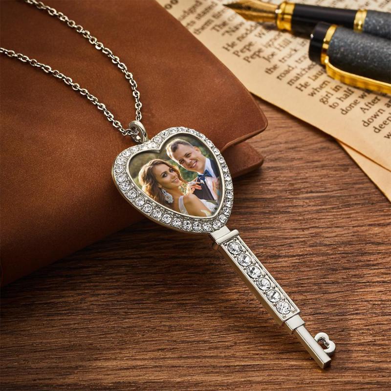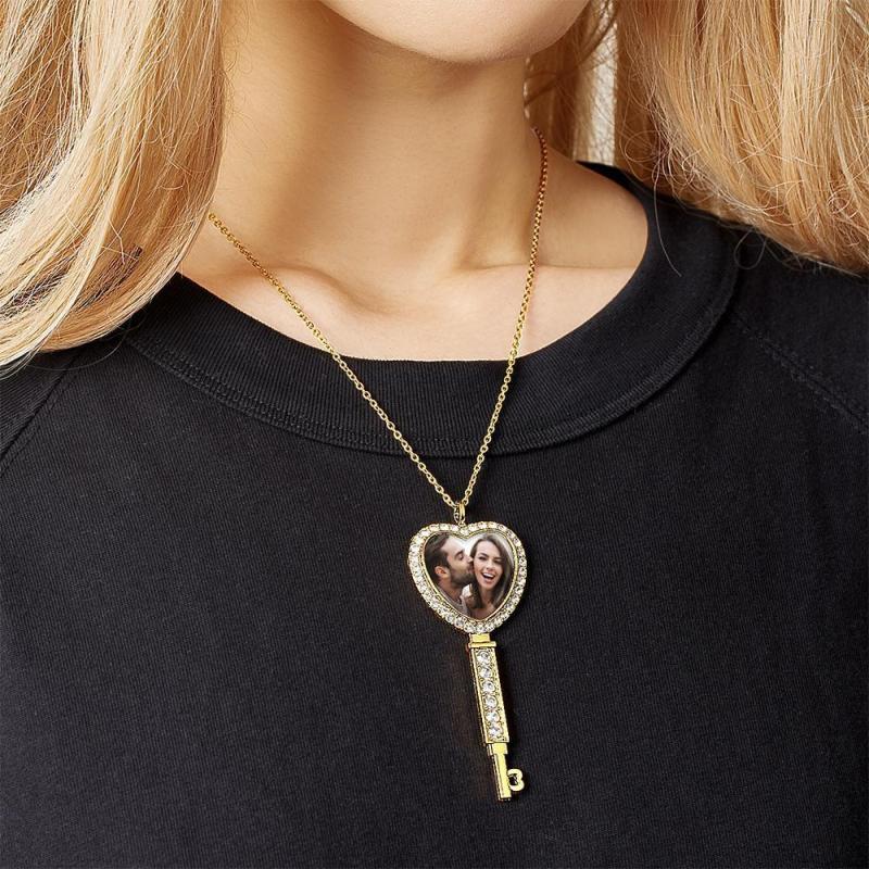 Benutzerdefinierte Schlüssel Strass Grenze Foto Halskette Paar Foto Anhänger
