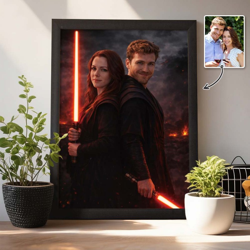 Individuell Gestalteter Bilderrahmen Mit Lichtschwertmotiven – Galaktische Heldenpaare – Valentinstagsgeschenk Für Paare