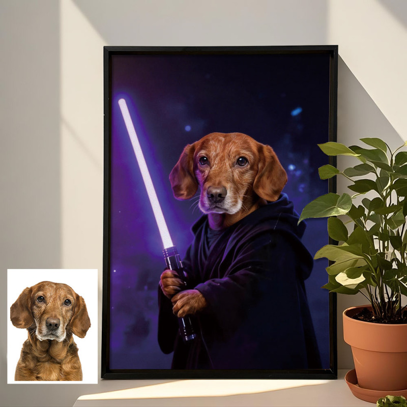 Individuell Gestalteter Bilderrahmen Mit Lichtschwert-motiv – Ein Geschenk Für Tierliebhaber