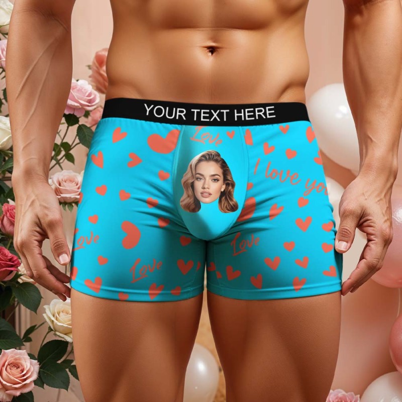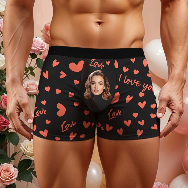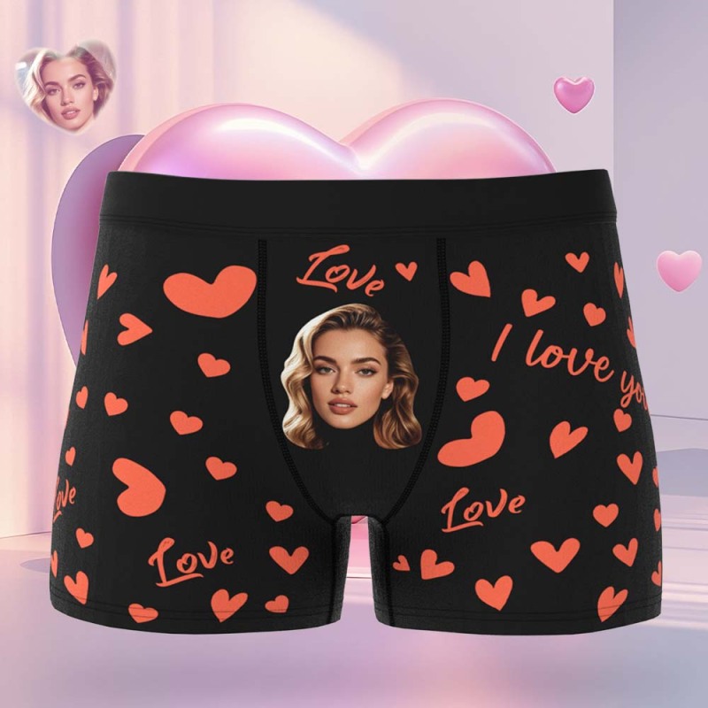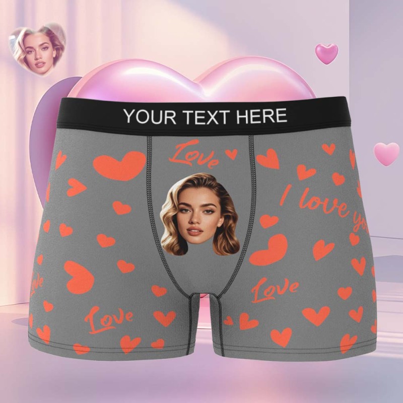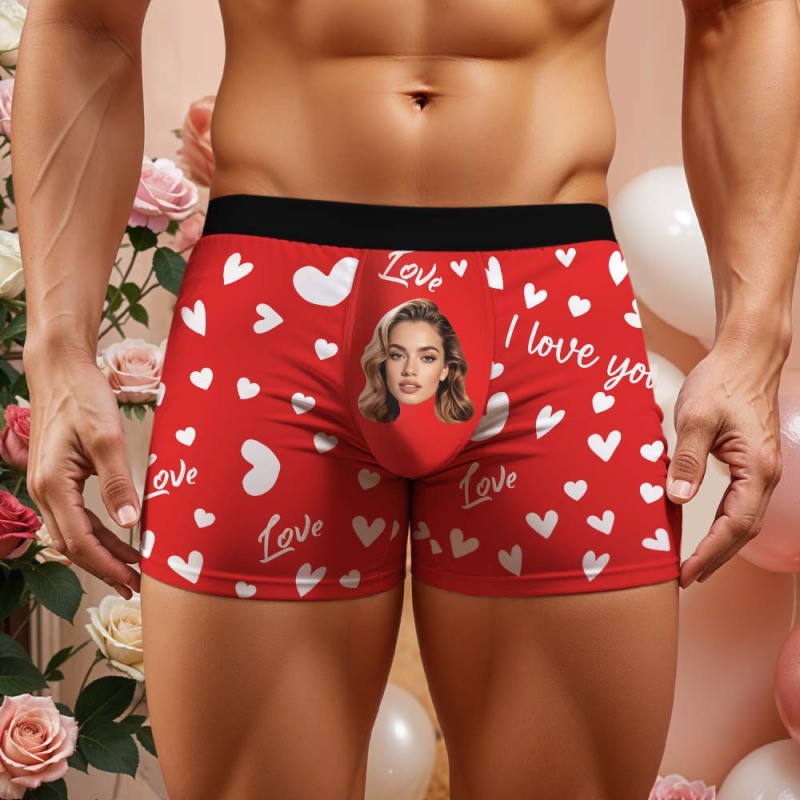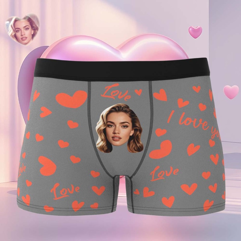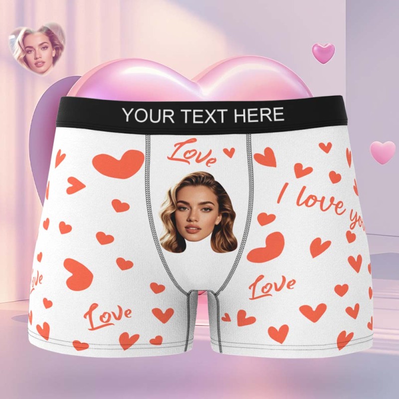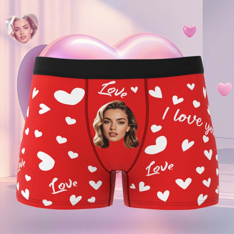 Benutzerdefinierte Herren-boxershorts Mit Gesicht, Personalisierte Boxershorts Mit Herzmuster, Besonderes Geschenk Zum Valentinstag