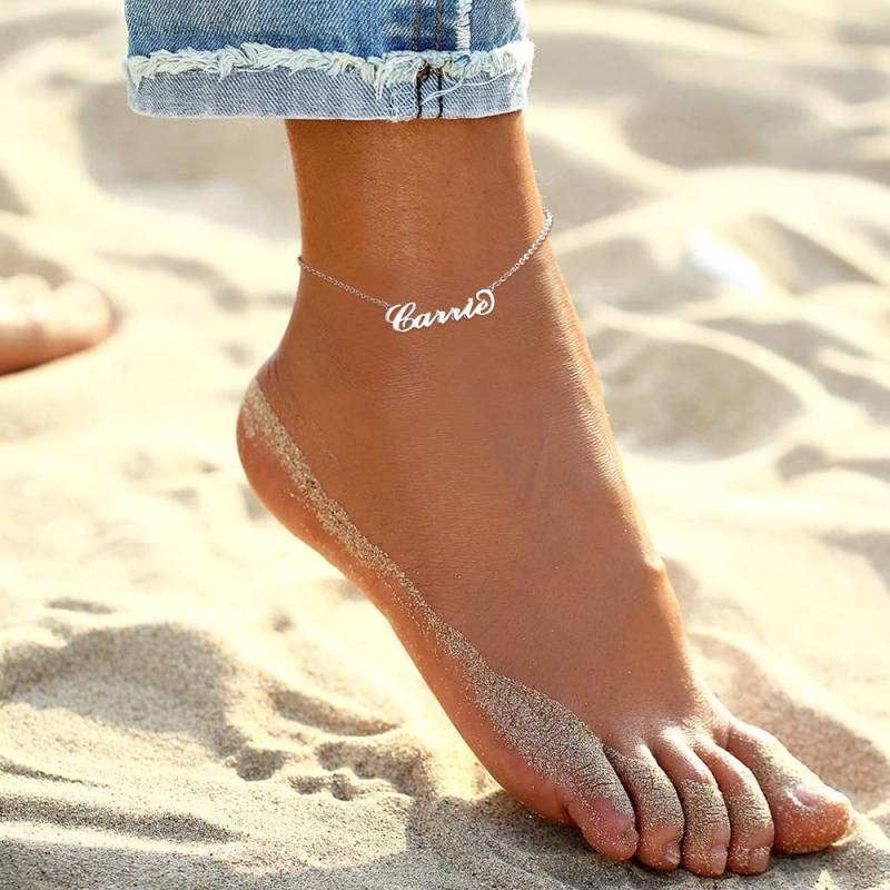 Kundenspezifische Name Fußkette, Personalisierte Schmuck Platin Vergoldet- Silber