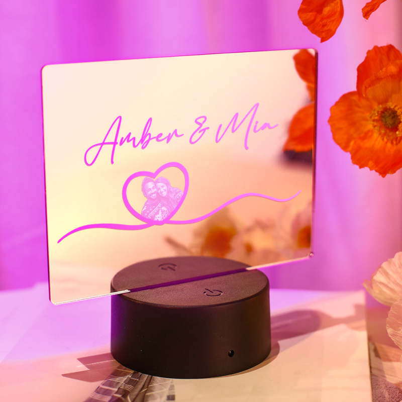 Individuelle Namensspiegel-fotolampe, Buntes Paar-geschenk