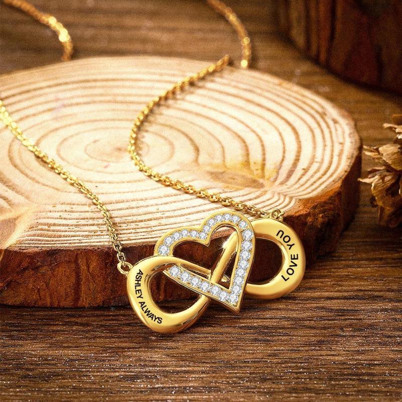 Benutzerdefinierte Name Halskette Infinity Heart Anhänger Halskette für sie 14 Karat Gold