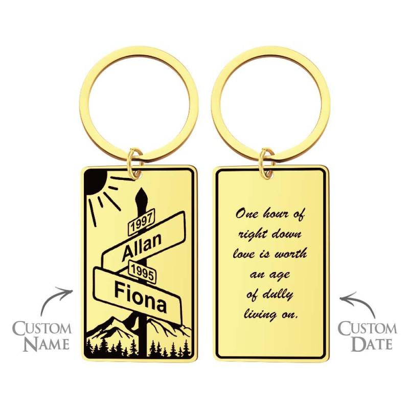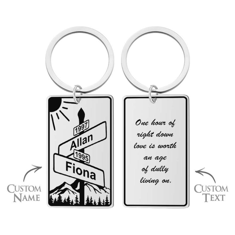 Benutzerdefinierter Namenstext Straßenschild Schlüsselanhänger, Personalisiertes Geschenk Zum Jahrestag Der Kreuzung Der Liebe Für Paare
