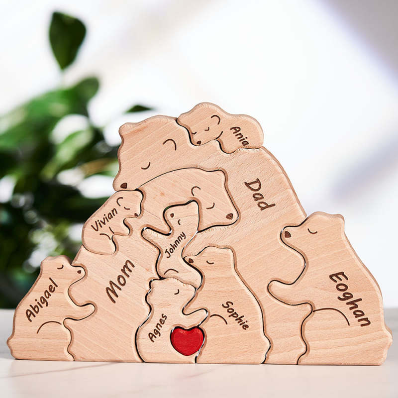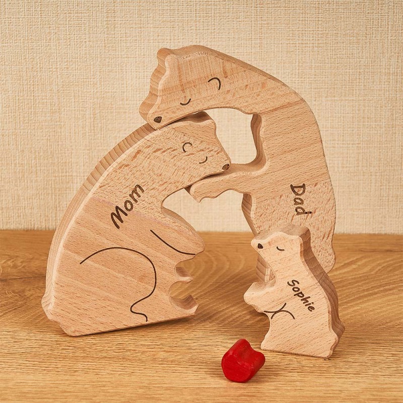 Benutzerdefinierte Namen Holz Bären Familie Block Puzzle Home Decor Geschenke