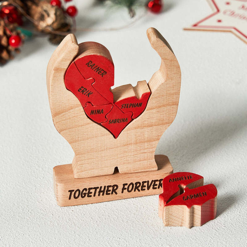 Benutzerdefinierte Namen Holzherz Familie Puzzle Home Decor Weihnachtsgeschenke