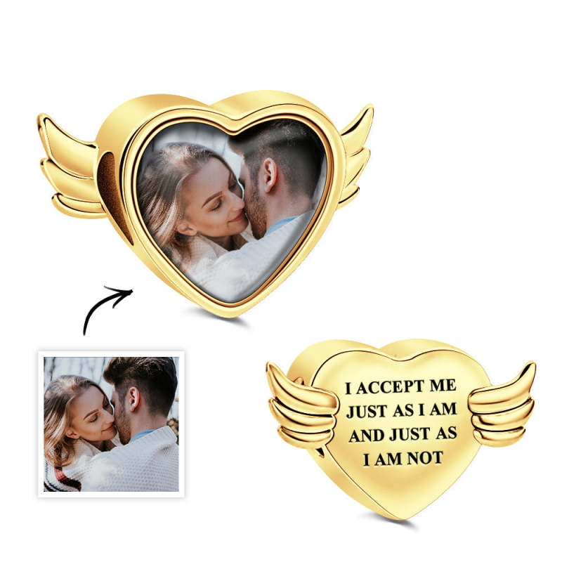 Benutzerdefinierter Foto-charm-engel Mit Geöffneten Flügeln Und Herz