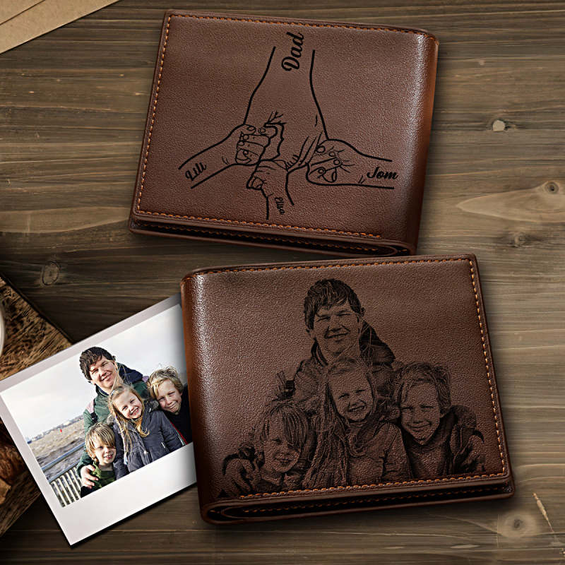 Individuelle Foto-gravierte Leder-geldbörse, Vatertagsgeschenk Für Papa
