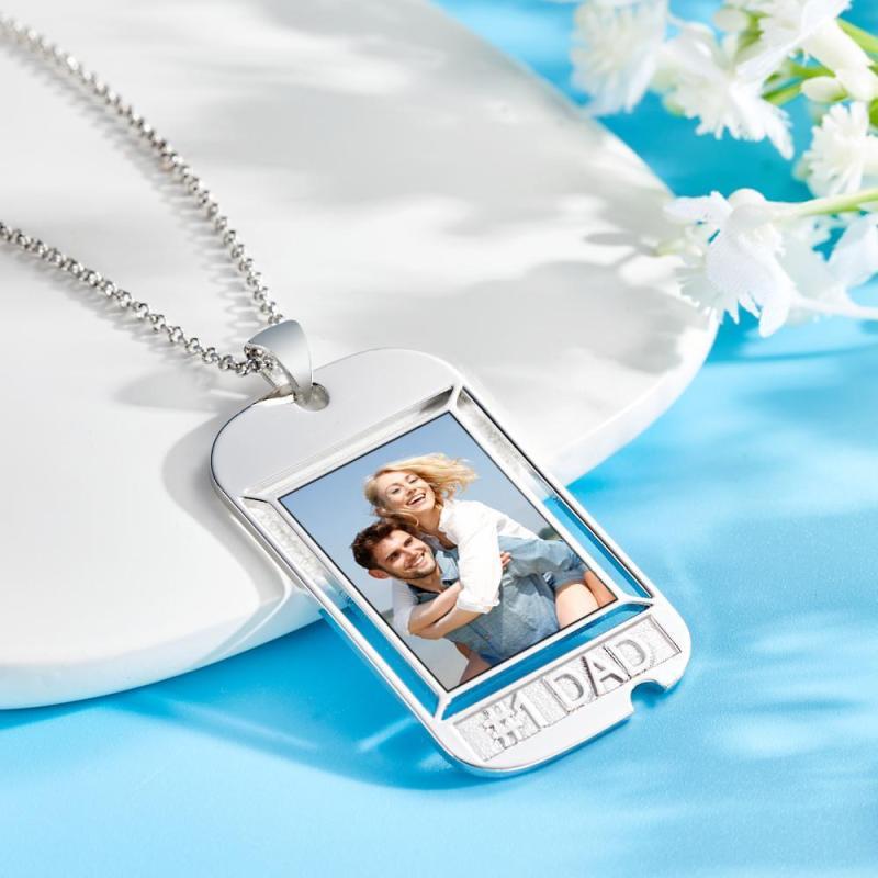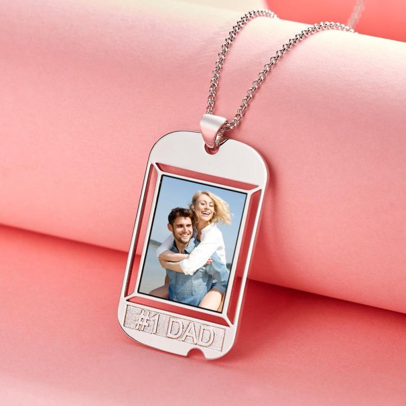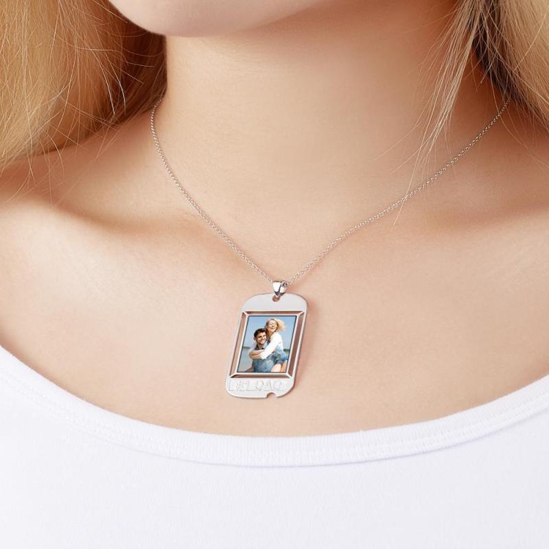 Kundenspezifisches Foto Gravierte Halsketten-Quadratisches Hangtag-Andenken-Geschenk Für Paare