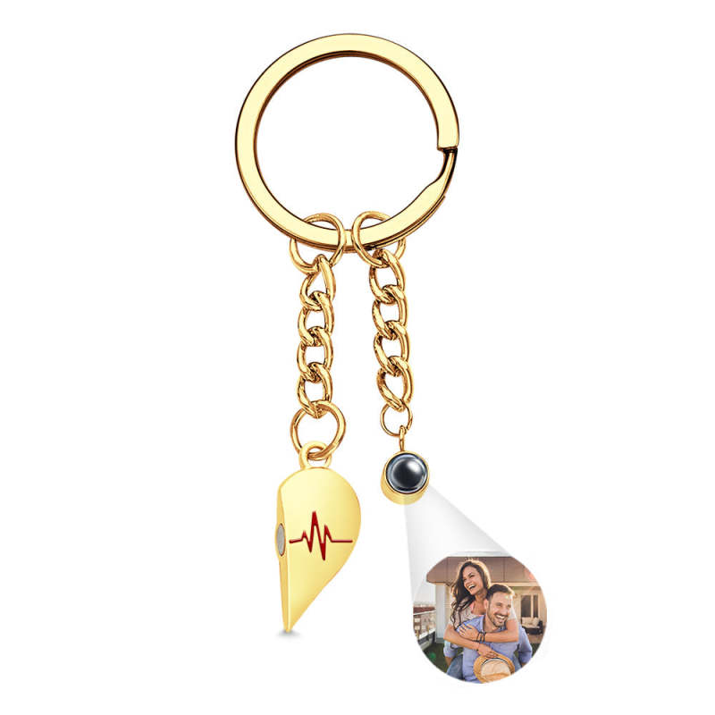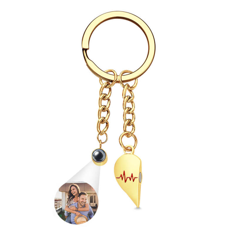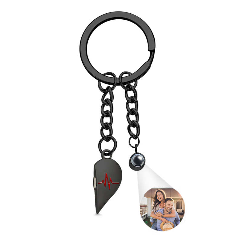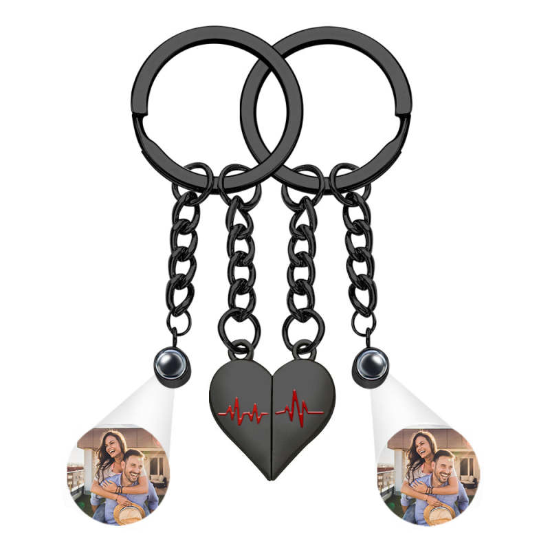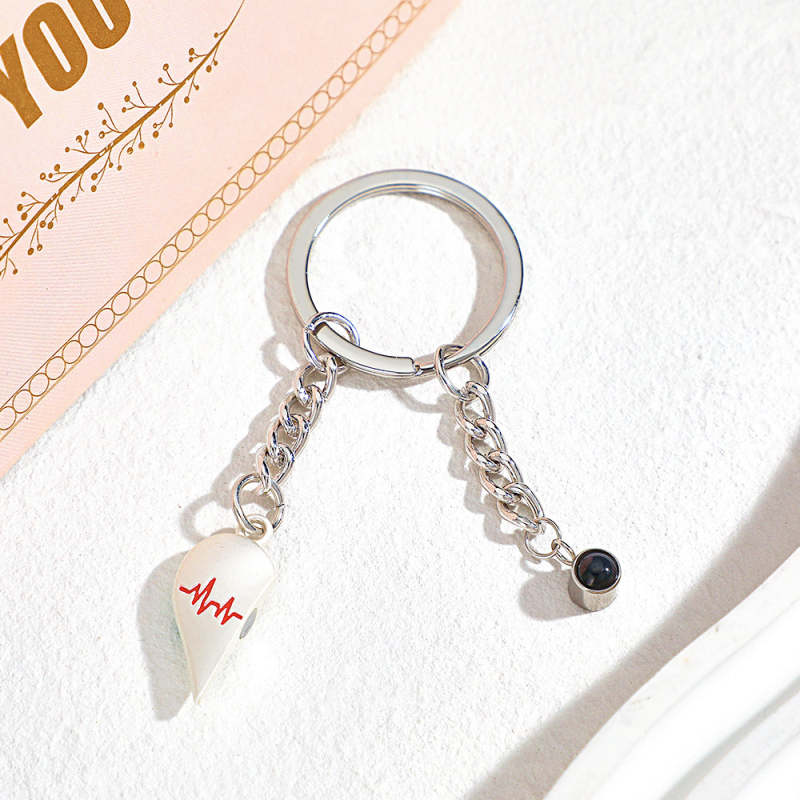 Individuelle Foto-herz-schlüsselanhänger, Paar-projektionsfoto, Magnetische Herzschlag-schlüsselanhänger