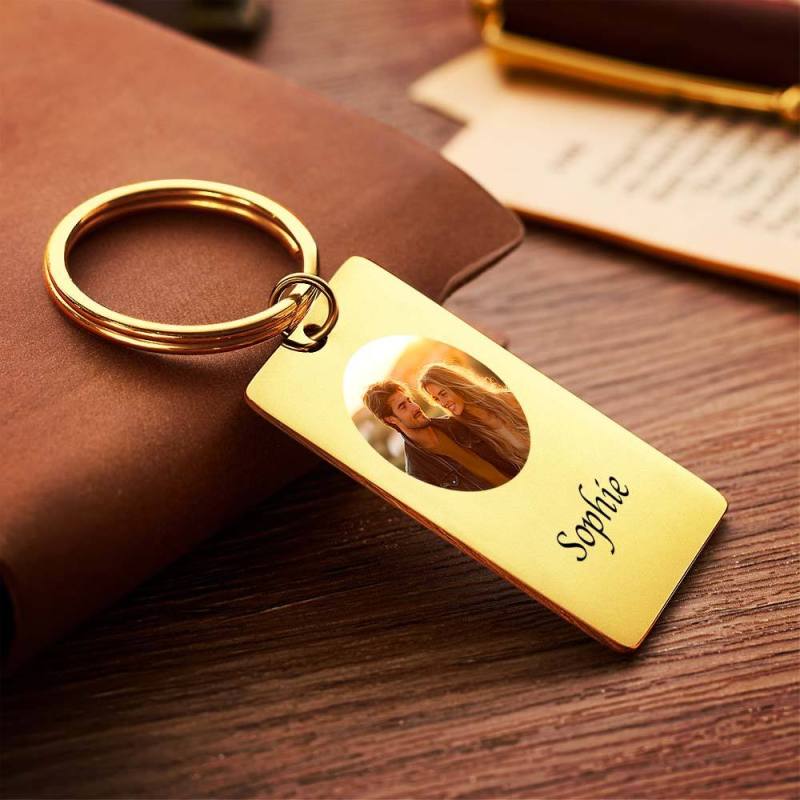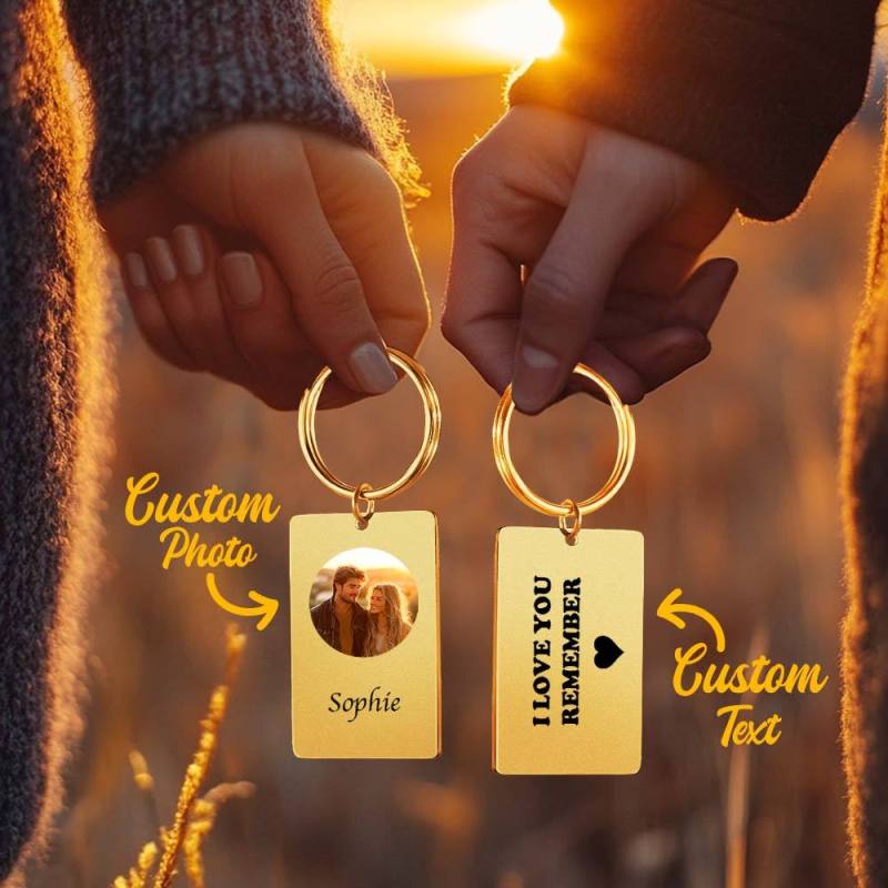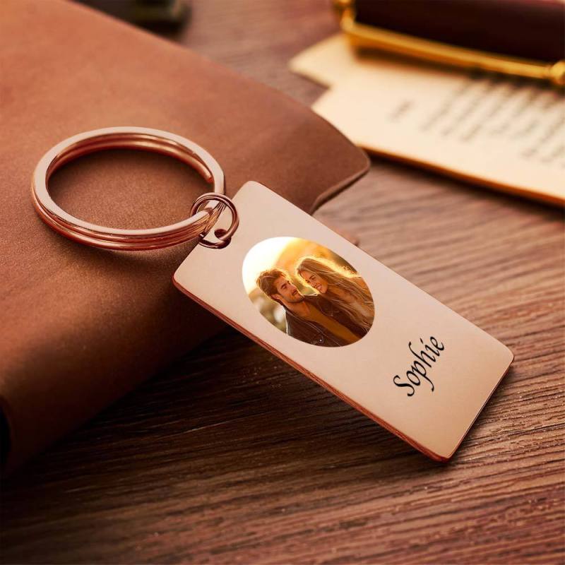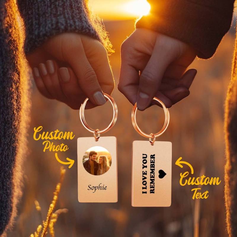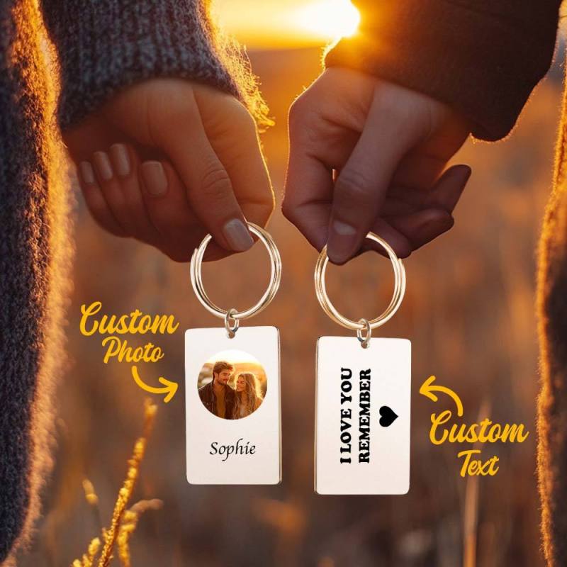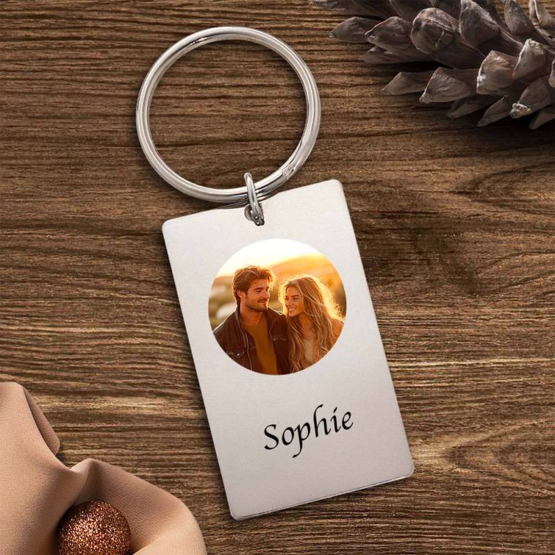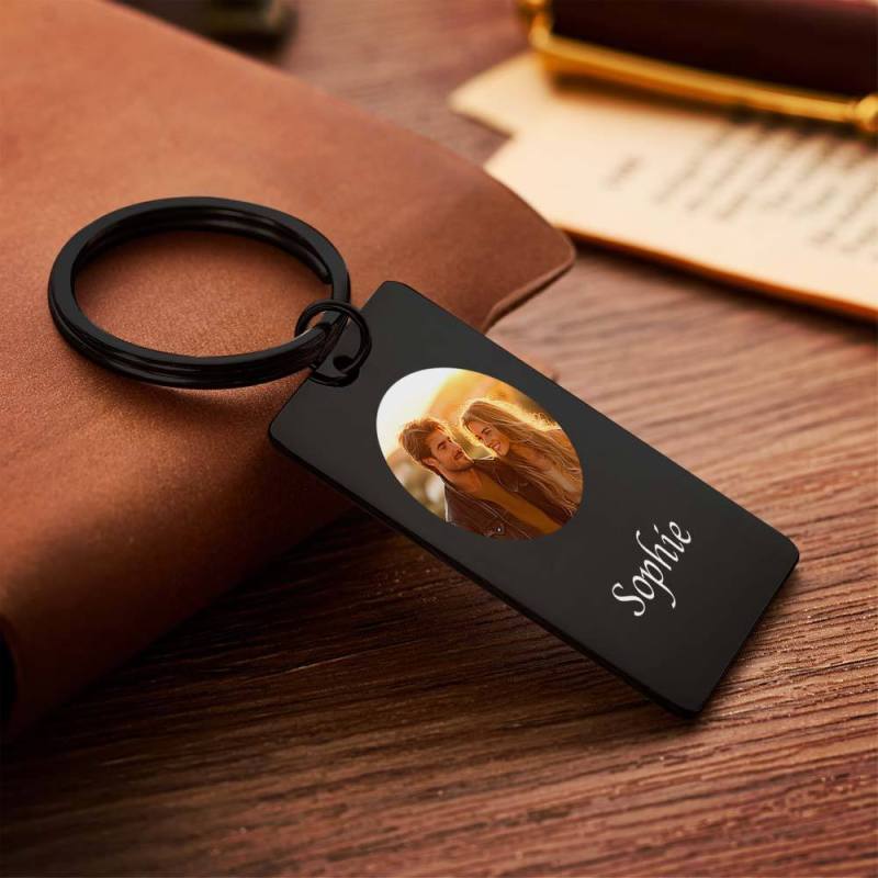Individueller Foto-schlüsselanhänger Mit Text-paar-geschenkidee, Schwarz-weiß-filter